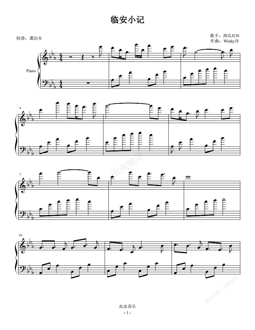 钢琴谱:临安小记 - 西瓜JUN 全网无五线谱系列