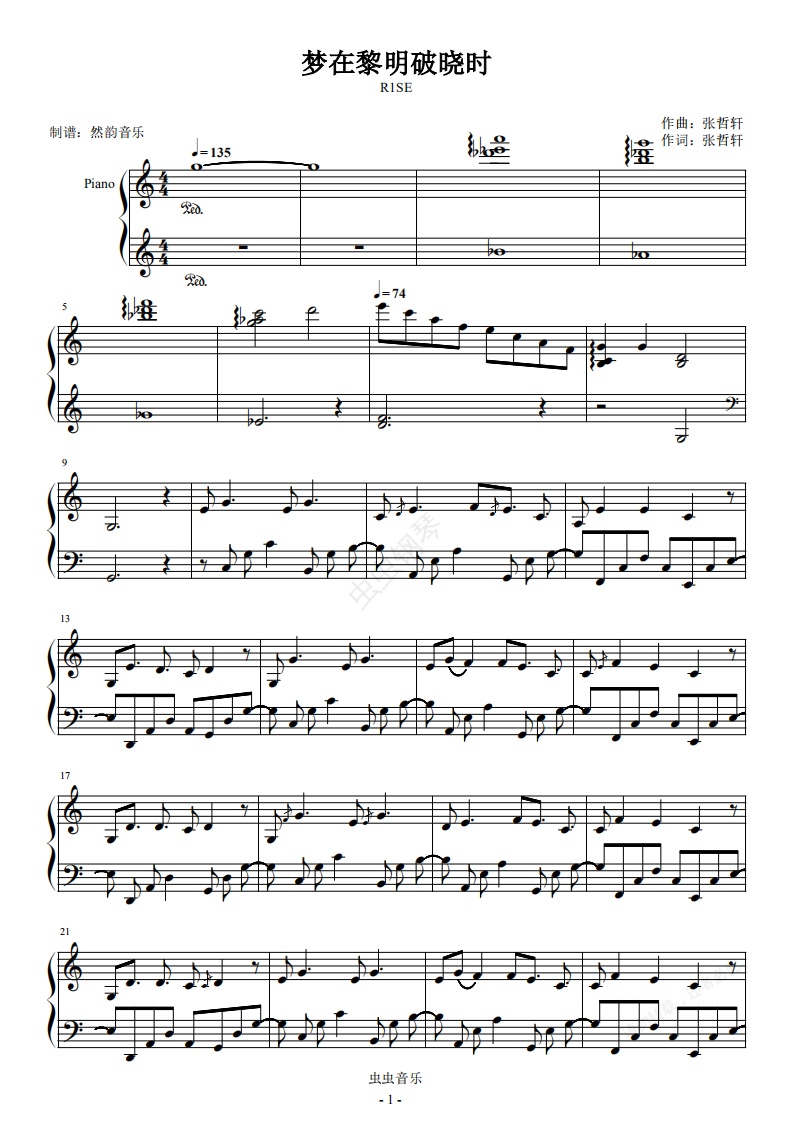 钢琴谱:【然韵音乐】R1SE-梦在黎明破晓时 《炙热的我们》完美独奏
