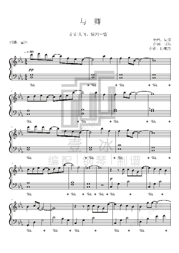 钢琴谱:与卿//周深-钢琴版降E壹冰