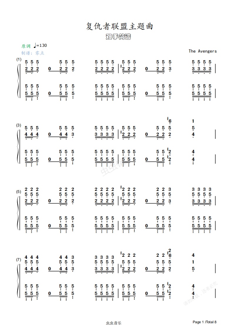 钢琴谱:【双手简谱】-复仇者联盟主题曲