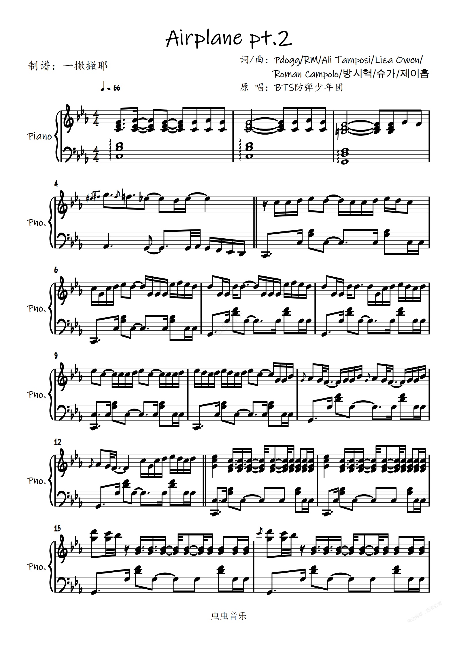 钢琴谱:Airplane pt.2【独奏谱】BTS防弹少年团「一撇撇耶」