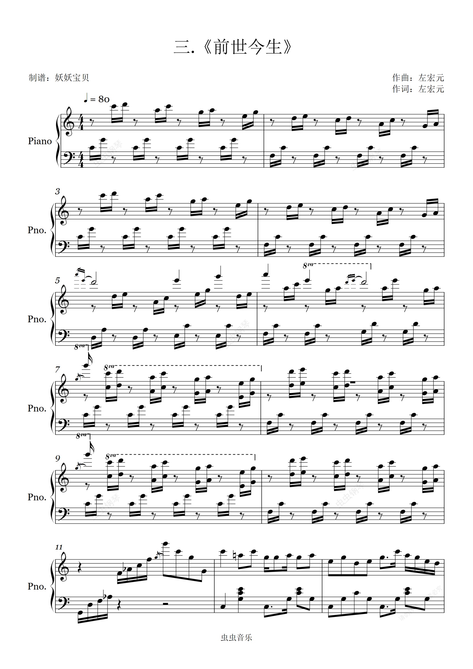 钢琴谱:《前世今生》(青城山下白素贞)