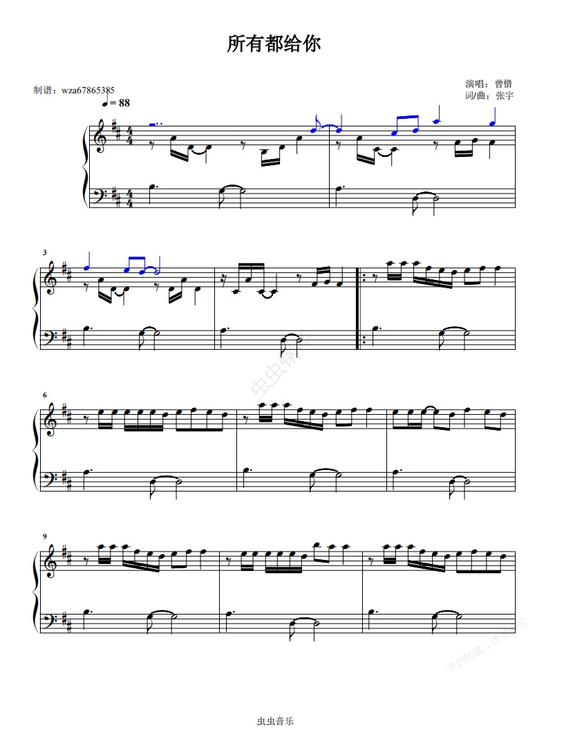 钢琴谱:所有都给你