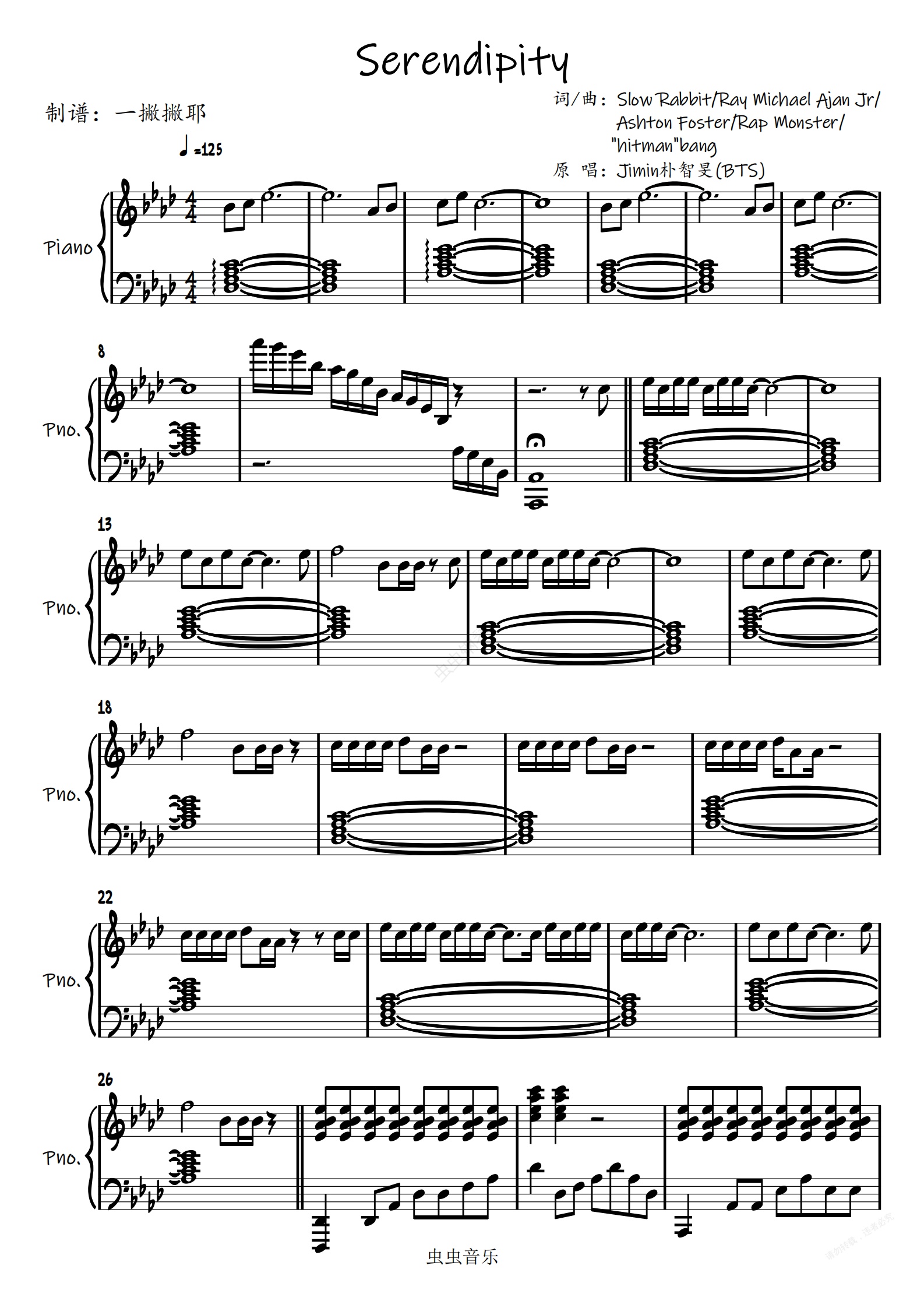 钢琴谱:Serendipity【独奏谱】JiMin朴智旻(BTS防弹少年团)「一撇撇耶」