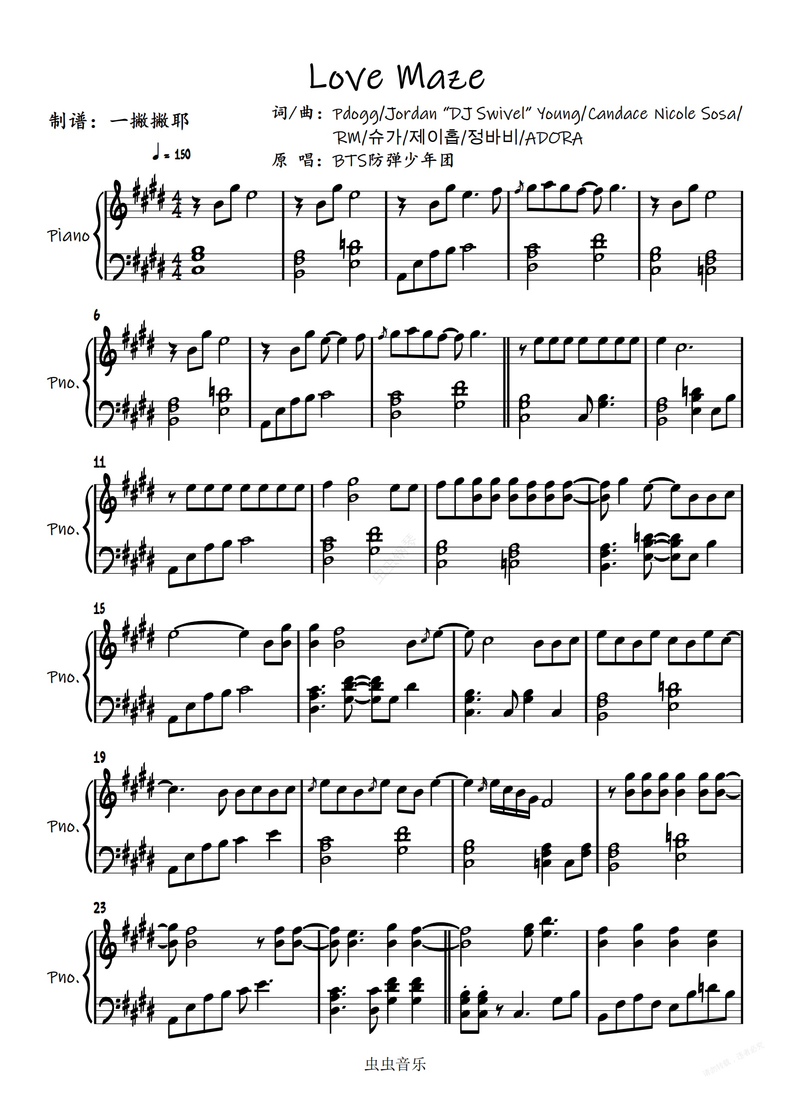 钢琴谱:Love Maze【独奏谱】BTS防弹少年团「一撇撇耶」