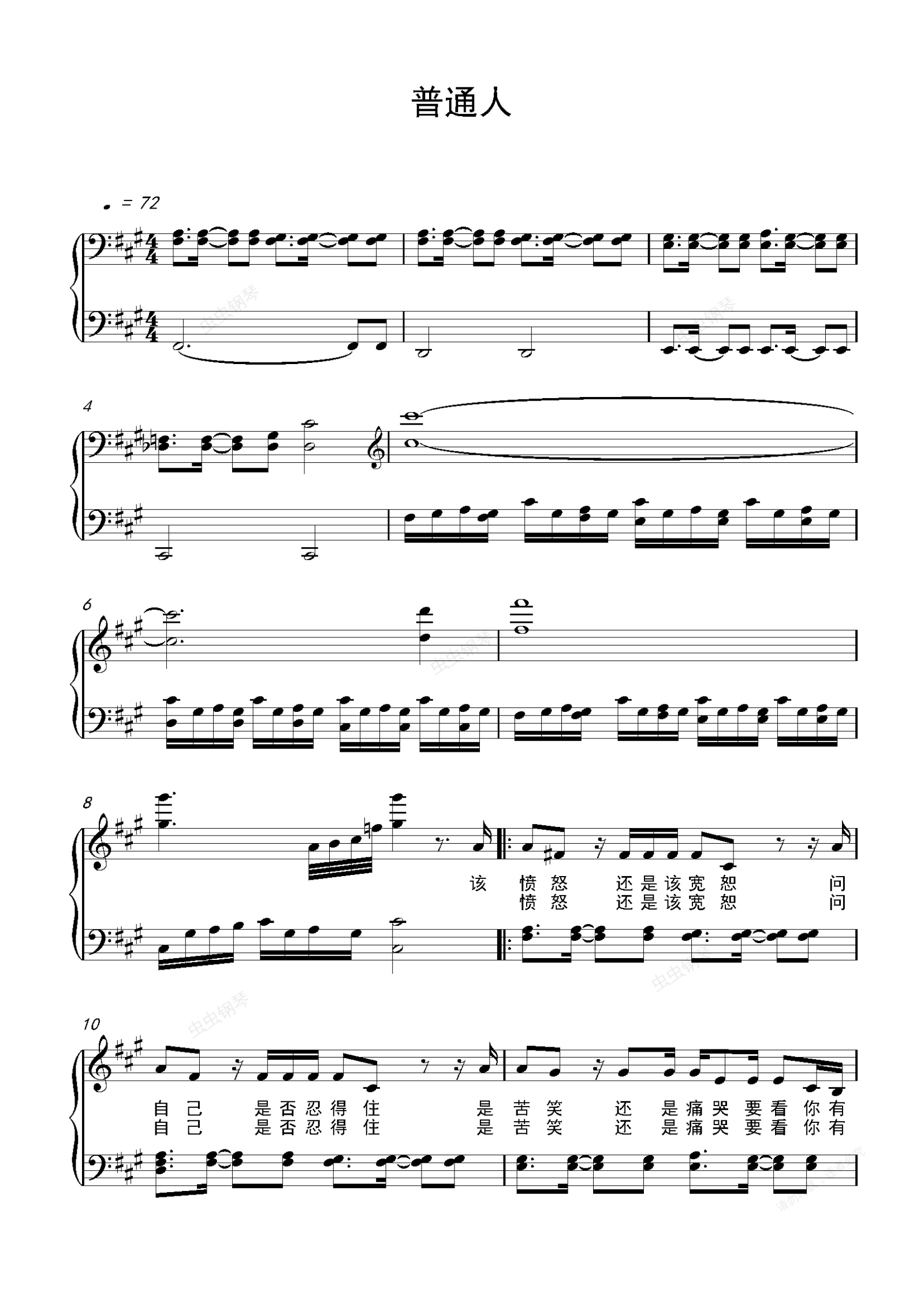 钢琴谱:普通人 (独奏)