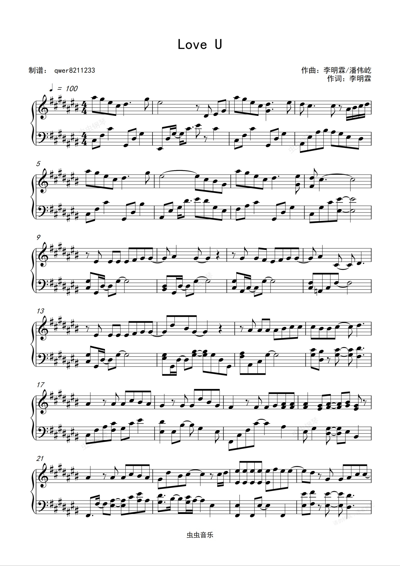 钢琴谱:Love U
