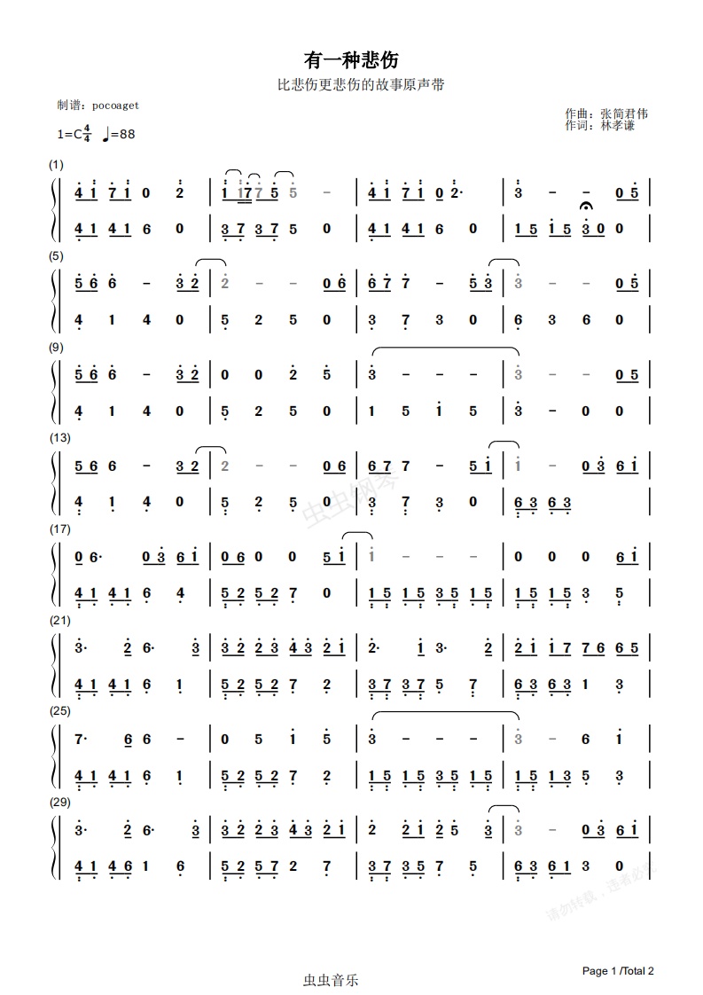 钢琴谱:有一种悲伤(电影《比悲伤更悲伤的故事》主题曲)初学者唯美版(poc编配)