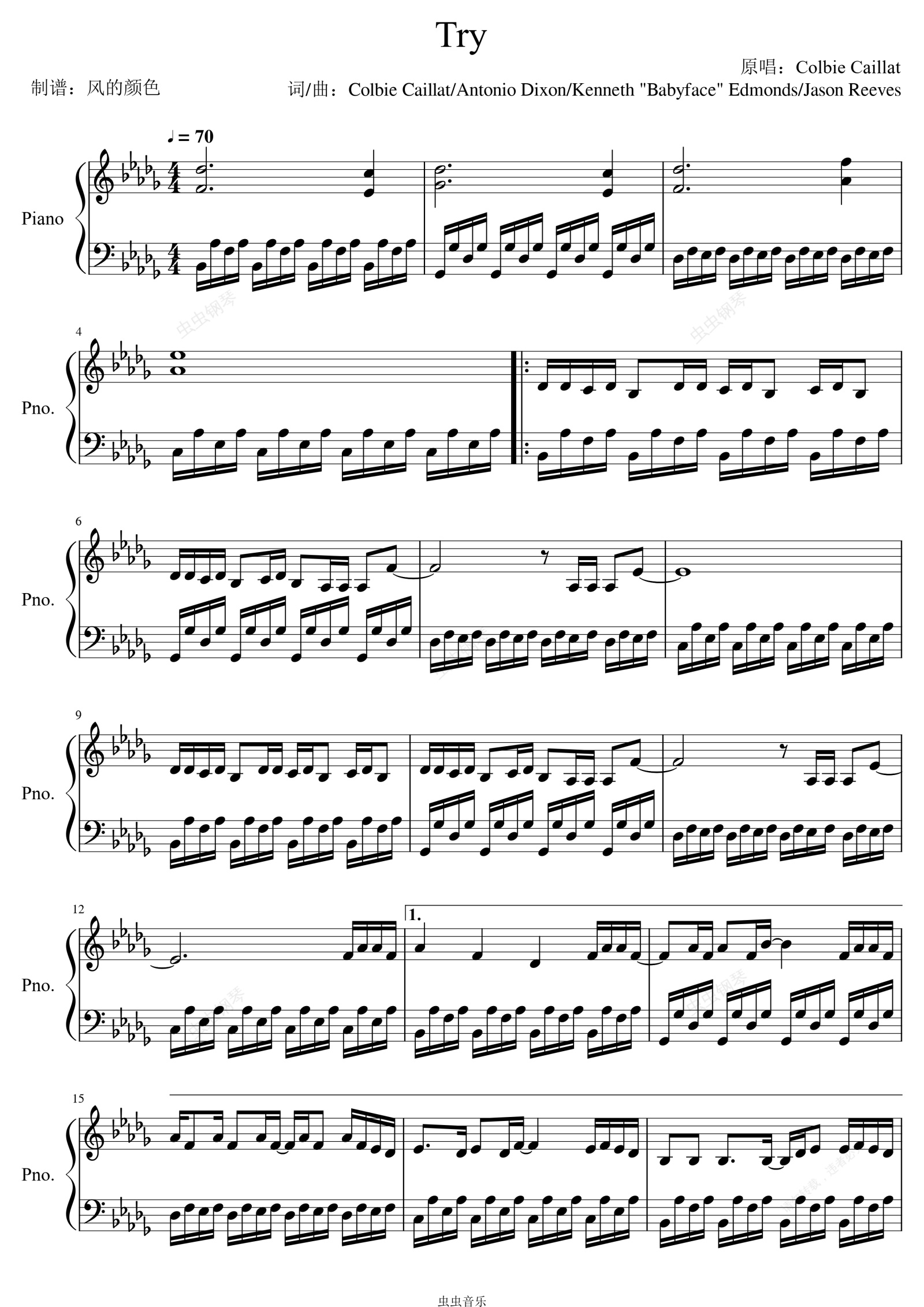 钢琴谱:《Try 》美国歌手Colbie Caillat柔情单曲