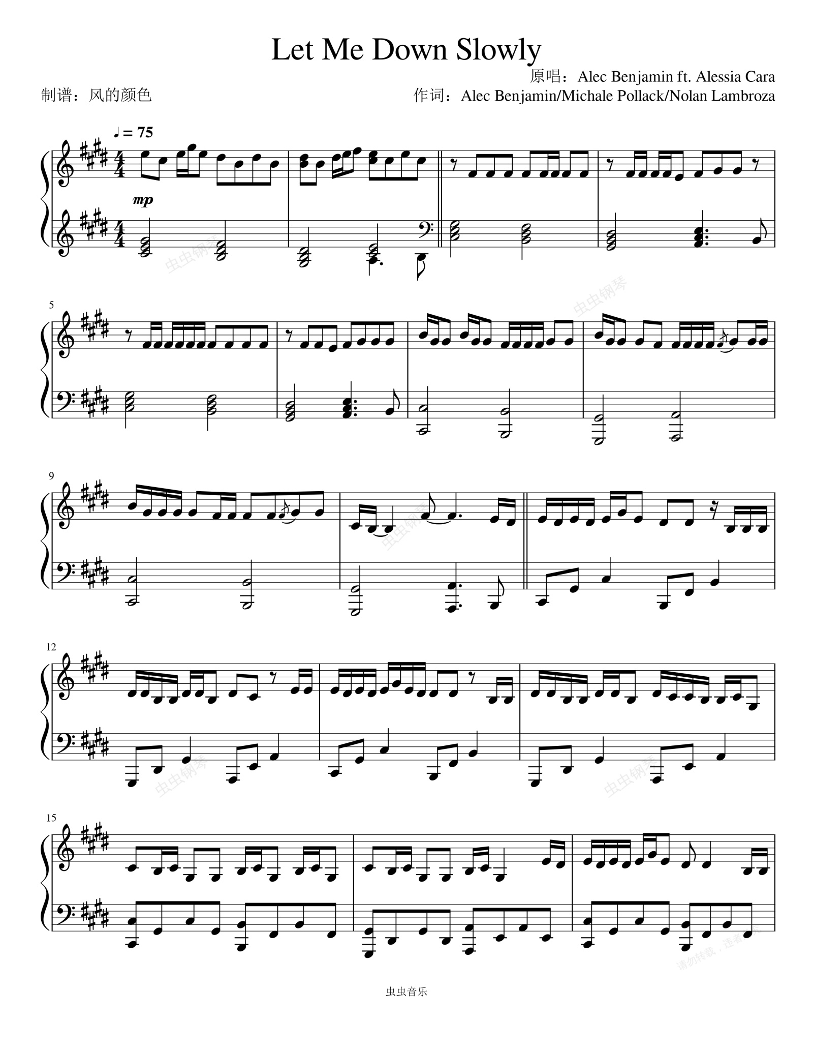 钢琴谱:Let Me Down Slowly~Alec Benjamin热门单曲
