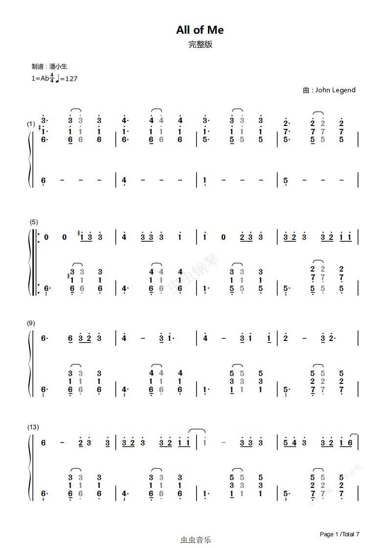 钢琴谱:[双手简谱] All of Me 完整版 原调