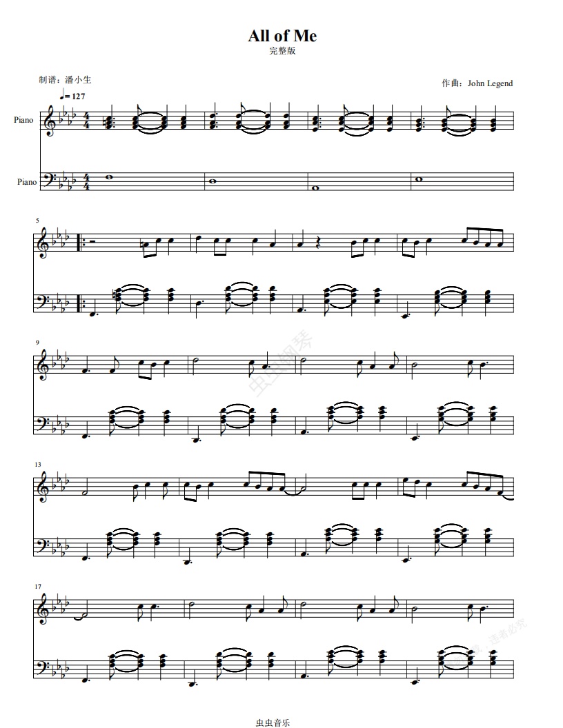 钢琴谱:All of Me 完整版 原调 独奏版 John Legend 我的一切