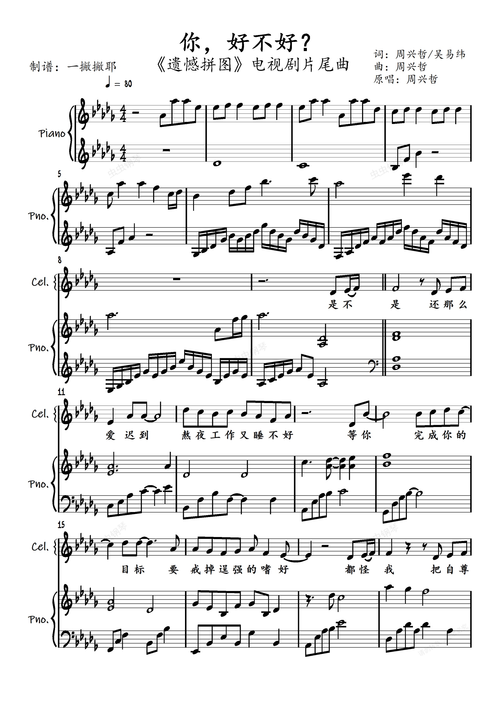 钢琴谱:【女版弹唱】你,好不好?-周兴哲「一撇撇耶」