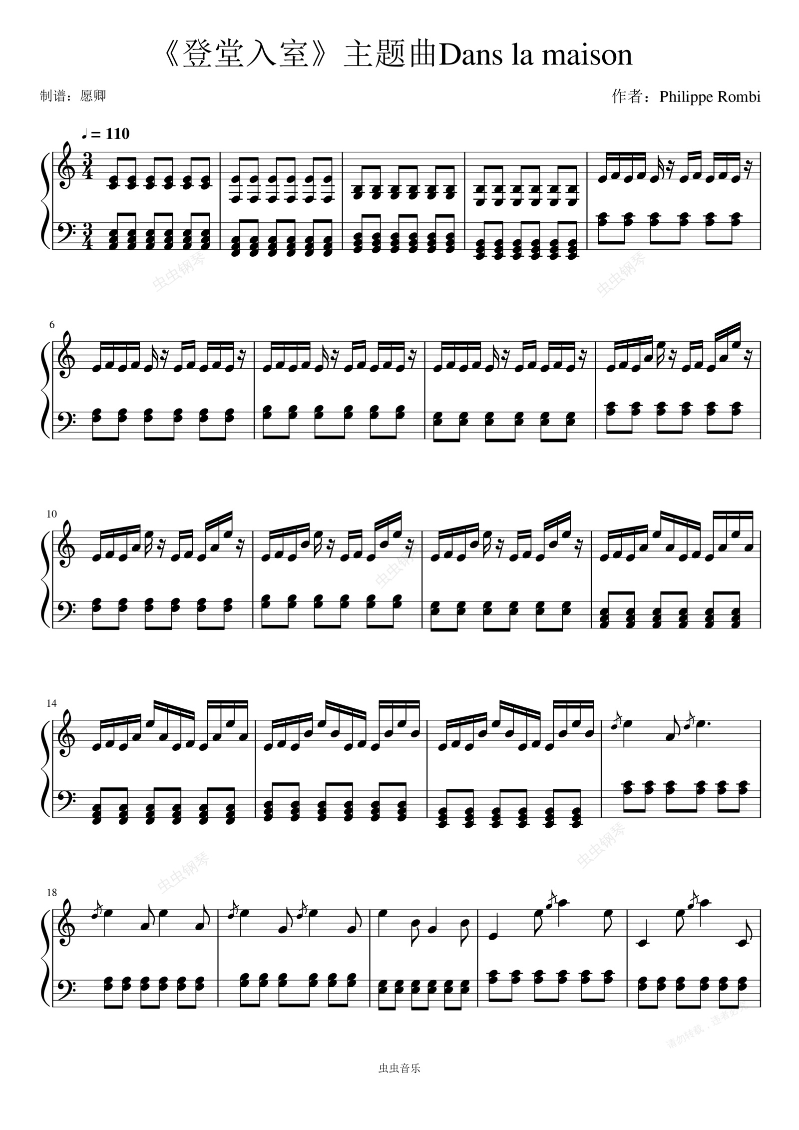钢琴谱:《登堂入室》主题曲Dans la maison