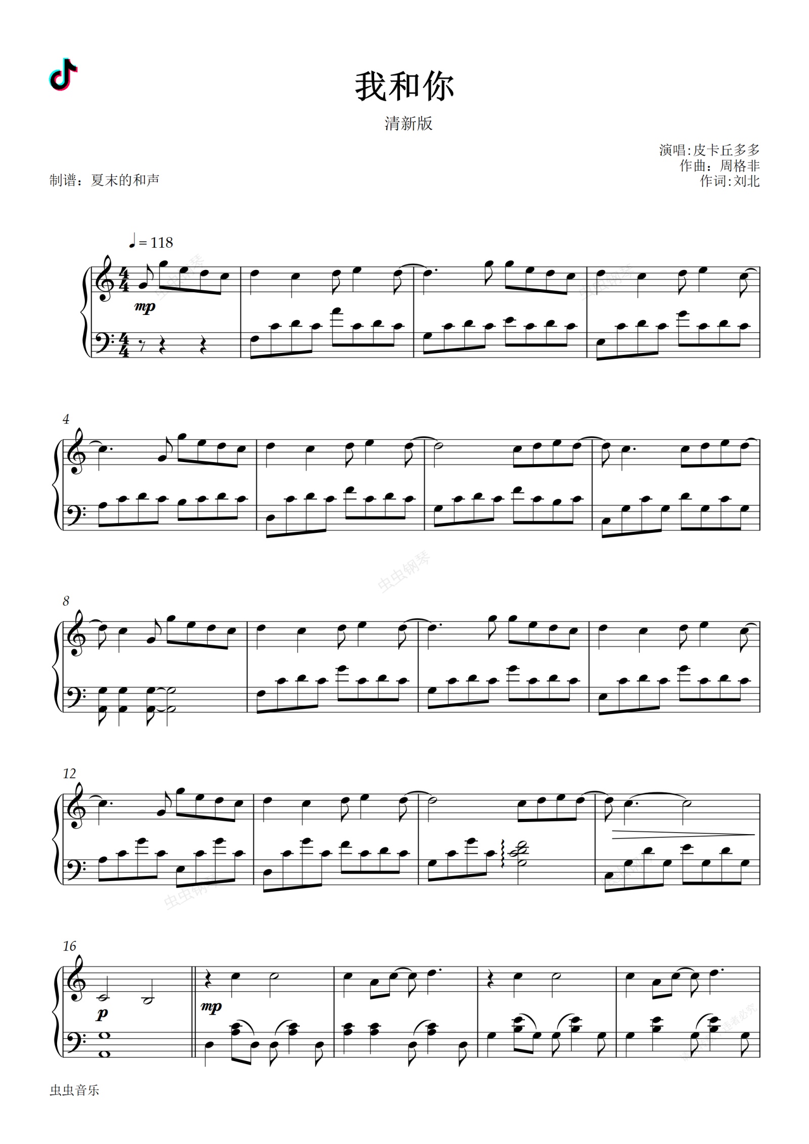 皮卡丘多多 - 我和你 - 唯美清新版 - C调易上手