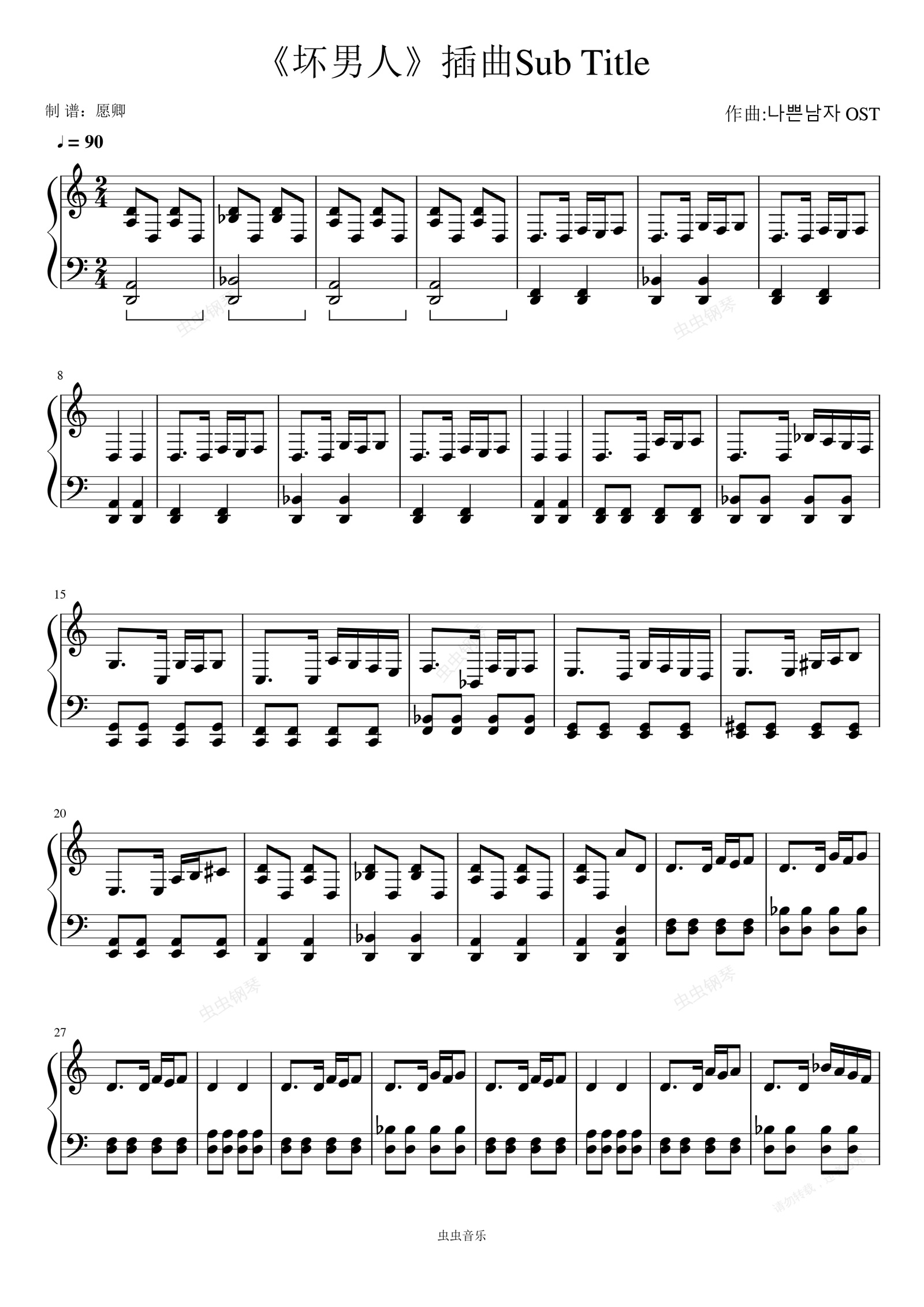 钢琴谱:韩剧《坏男人》插曲Sub Title