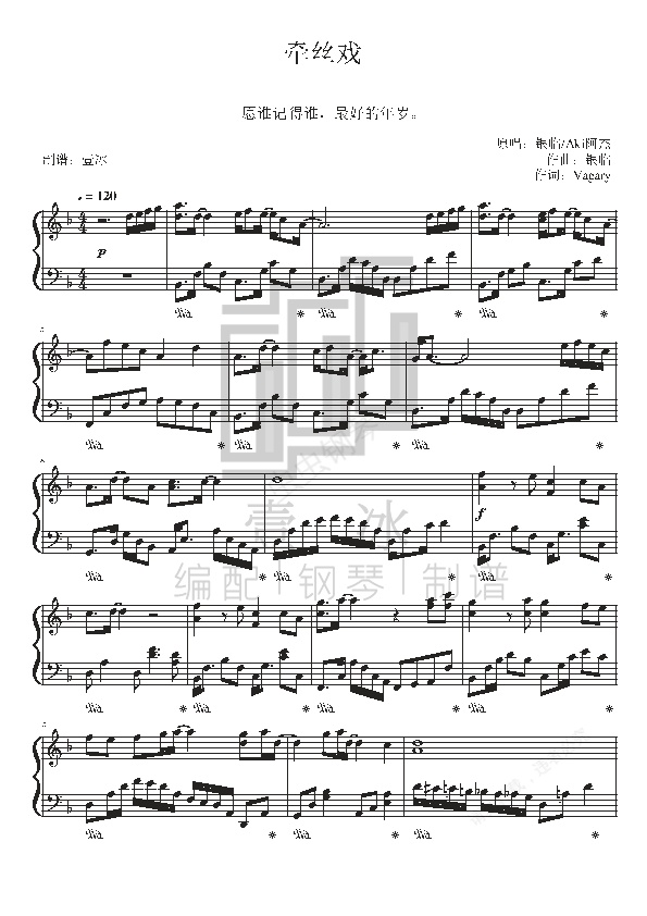 钢琴谱:牵丝戏//银临-壹冰钢琴版F调