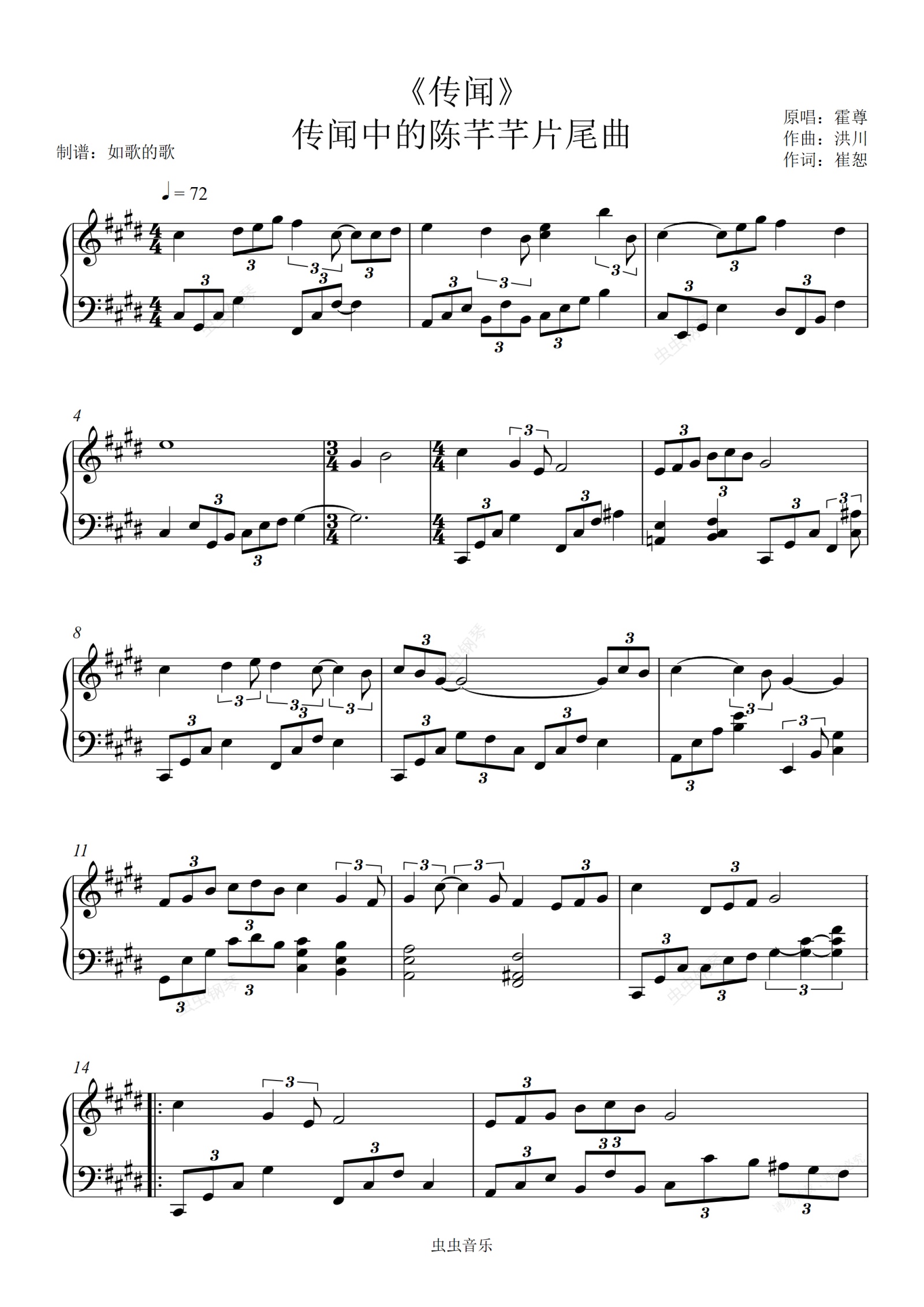 钢琴谱:《传闻》传闻中的陈芊芊改编钢琴曲