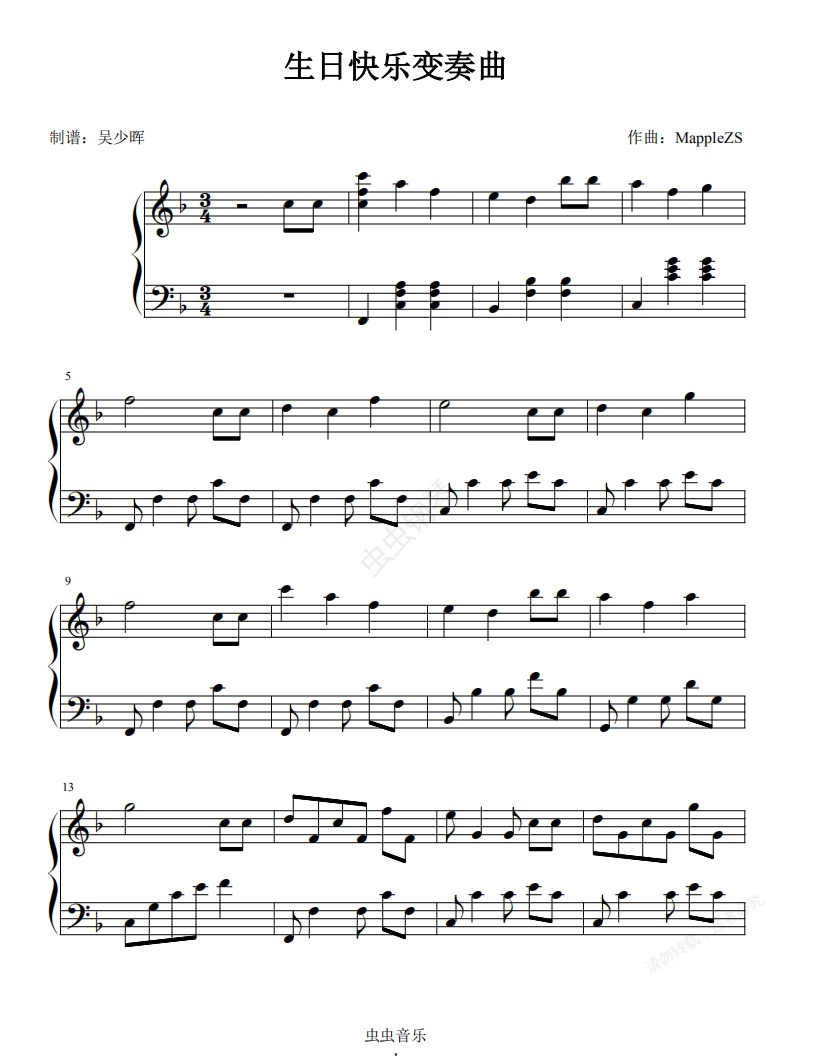 钢琴谱:生日快乐变奏曲