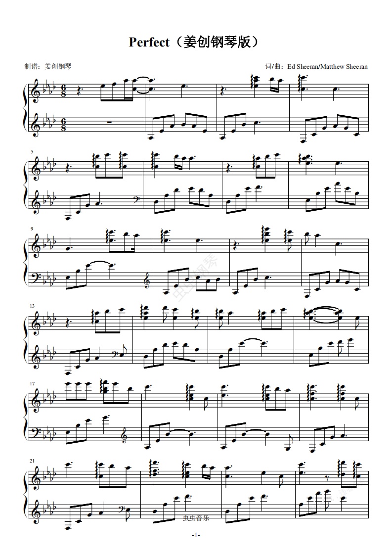 钢琴谱:黄老板《perfect》原版钢琴谱