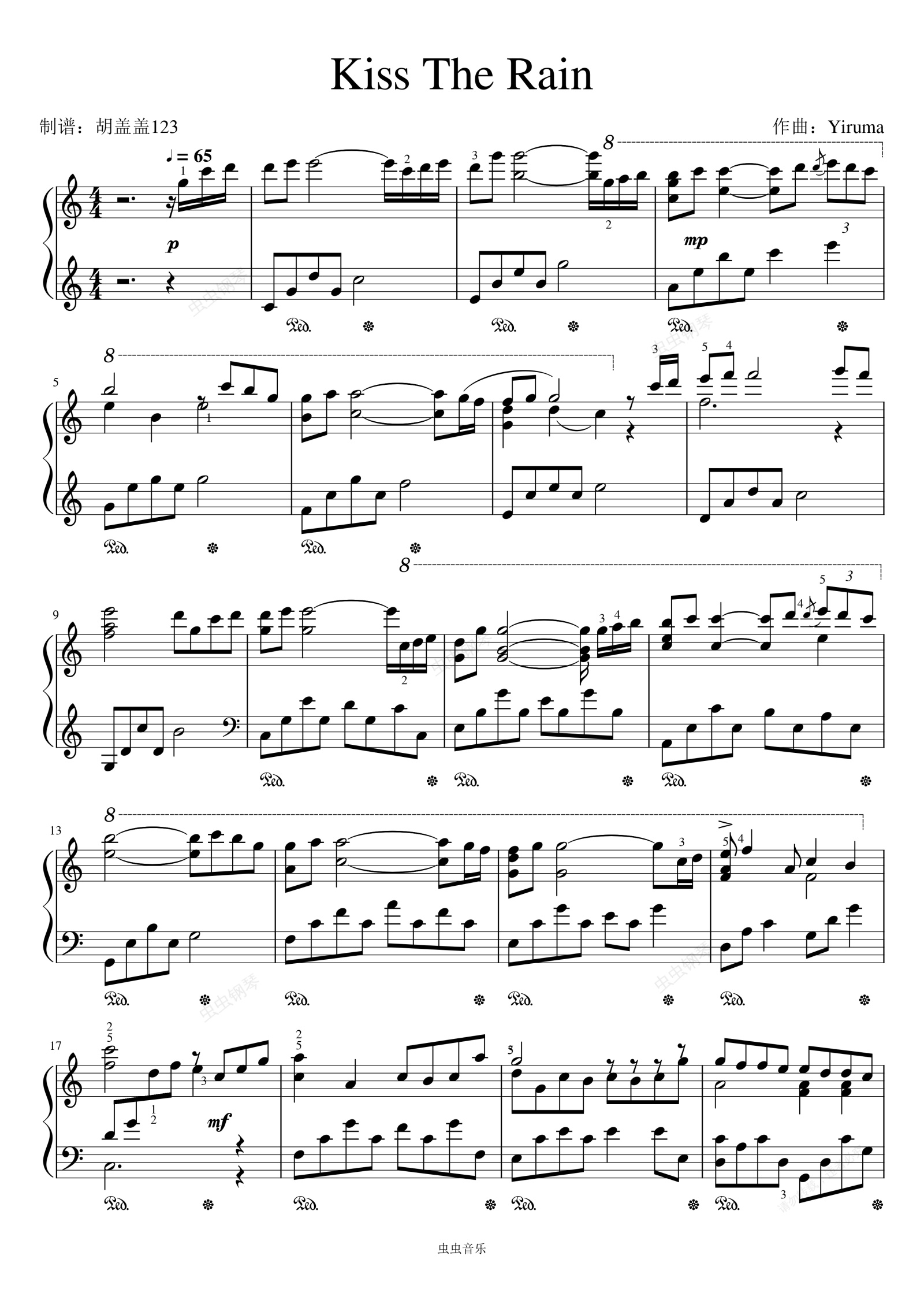 钢琴谱:Kiss The Rain(雨的印记)-C调