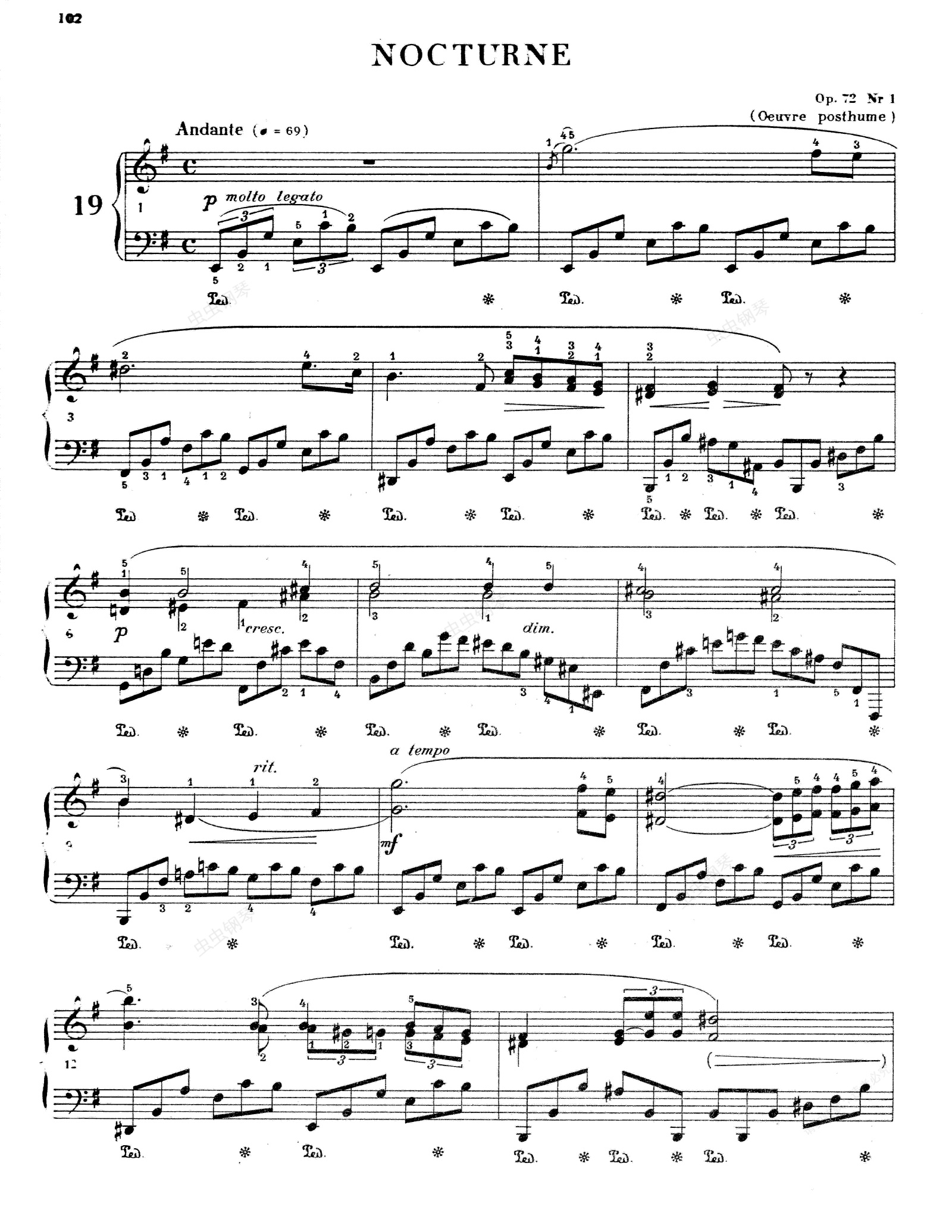 钢琴谱:Nocturnes.19 Op. 72 No. 1 in E minor 肖邦夜曲 Frédéric François Chopin