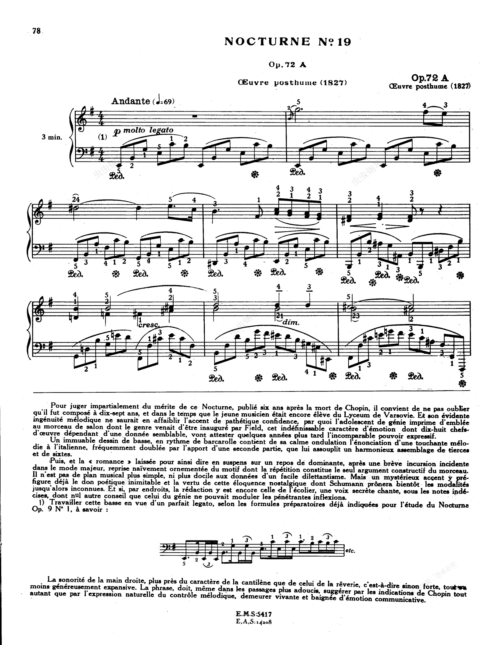 钢琴谱:Nocturnes.19 Op. 72 No. 1 in E minor 肖邦夜曲 Frédéric François Chopin