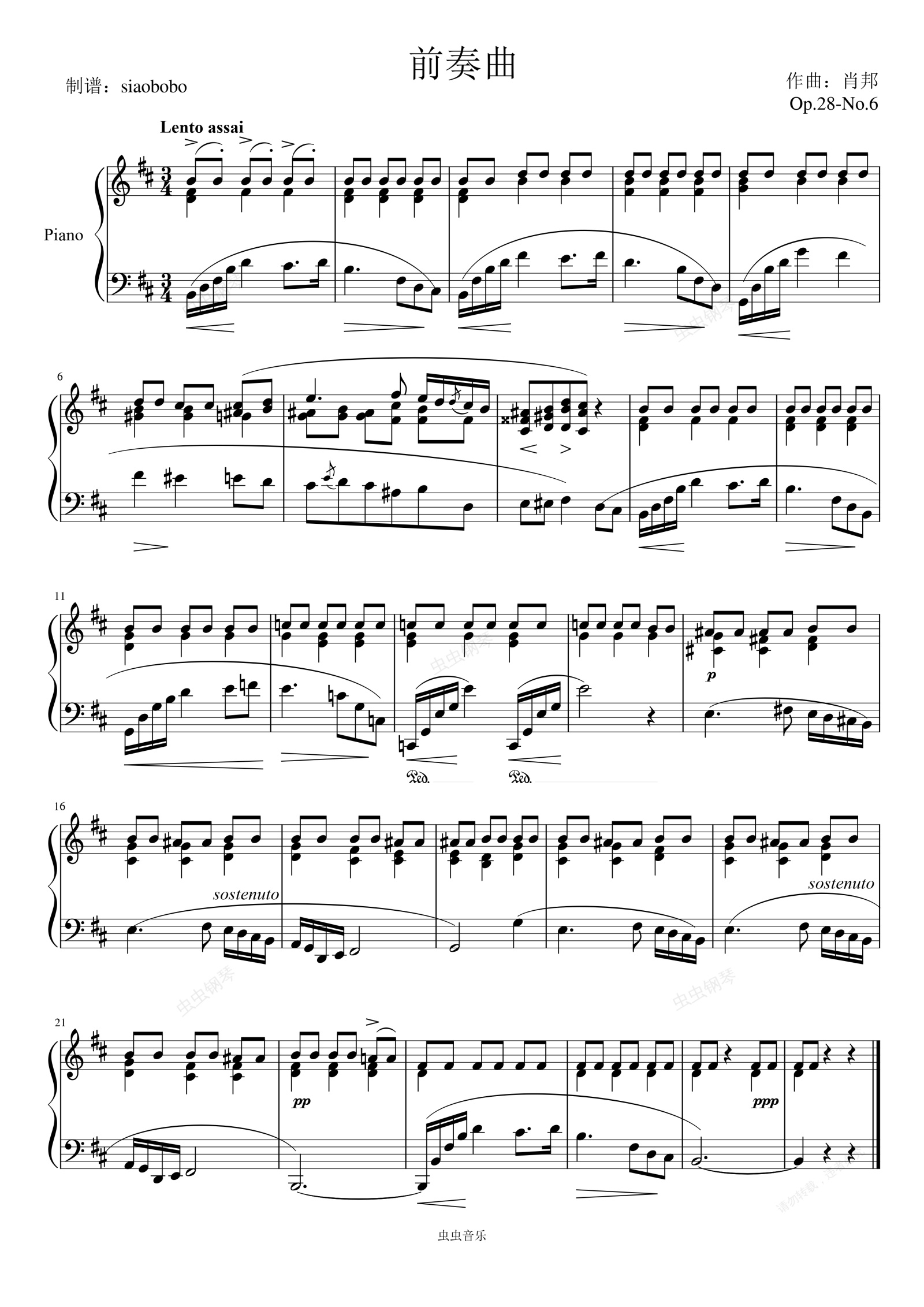 钢琴谱:Préludes——前奏曲Op.28-No.6(肖邦)