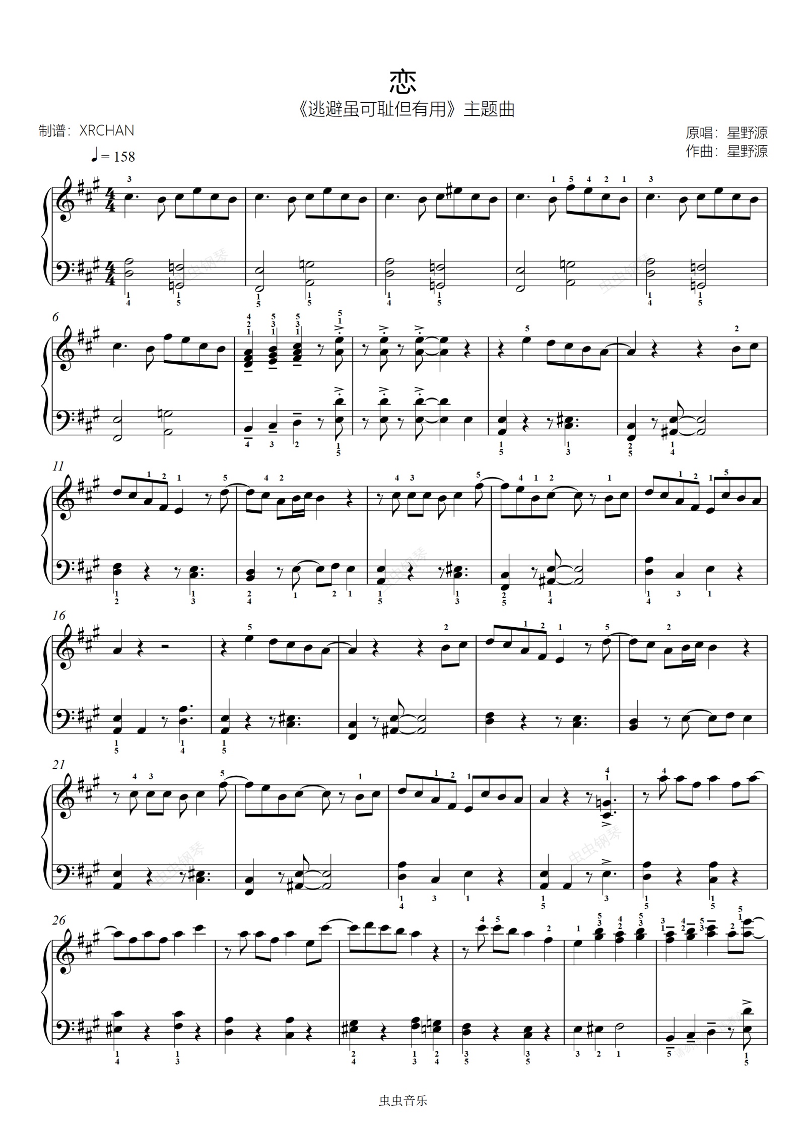 钢琴谱:《逃避虽可耻但有用》 主题曲 恋 (带指法 好听 简单)