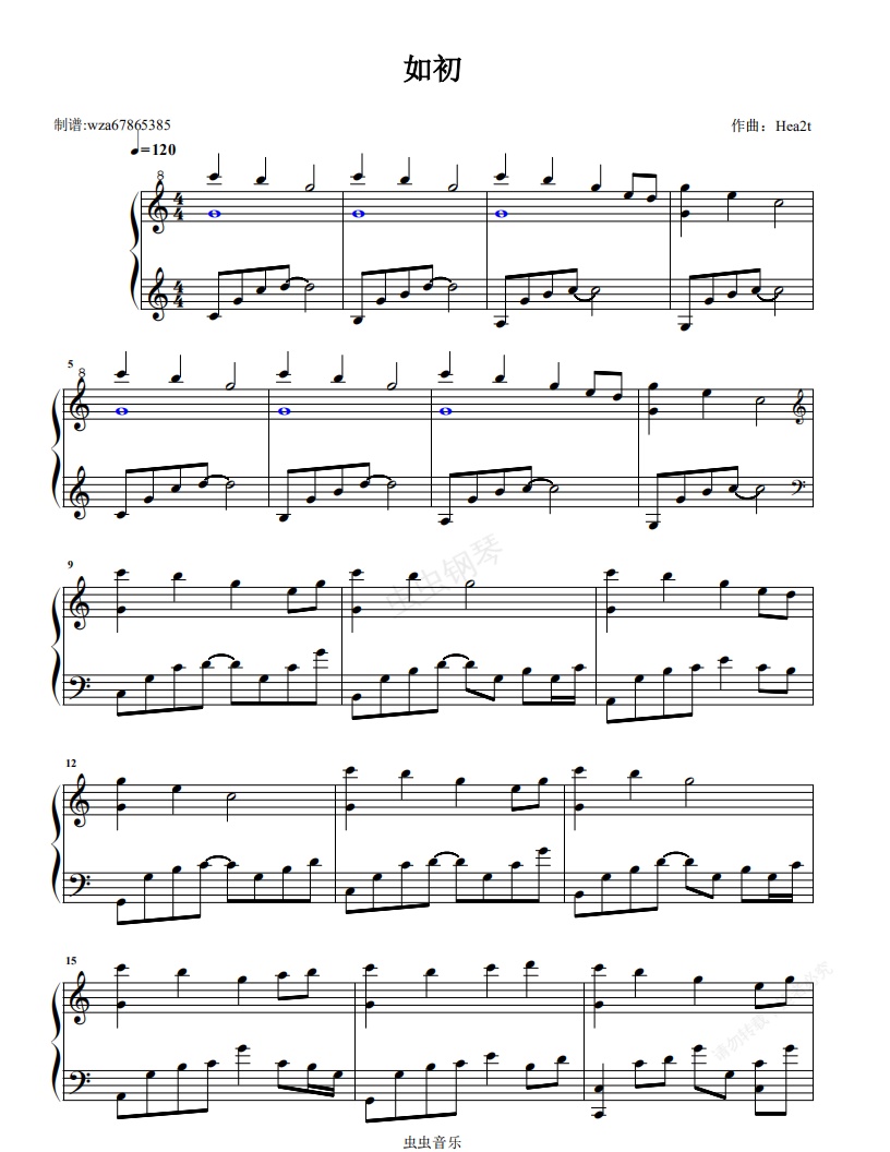 钢琴谱:如初