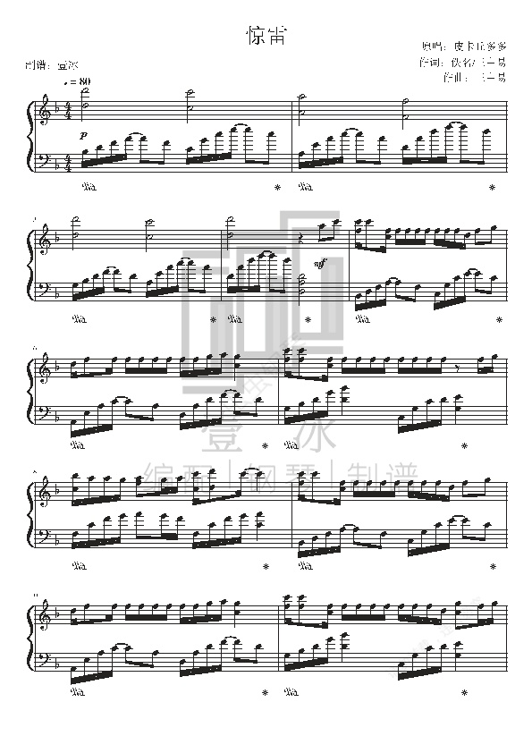 钢琴谱:惊雷抒情版//皮卡丘多多-壹冰F调