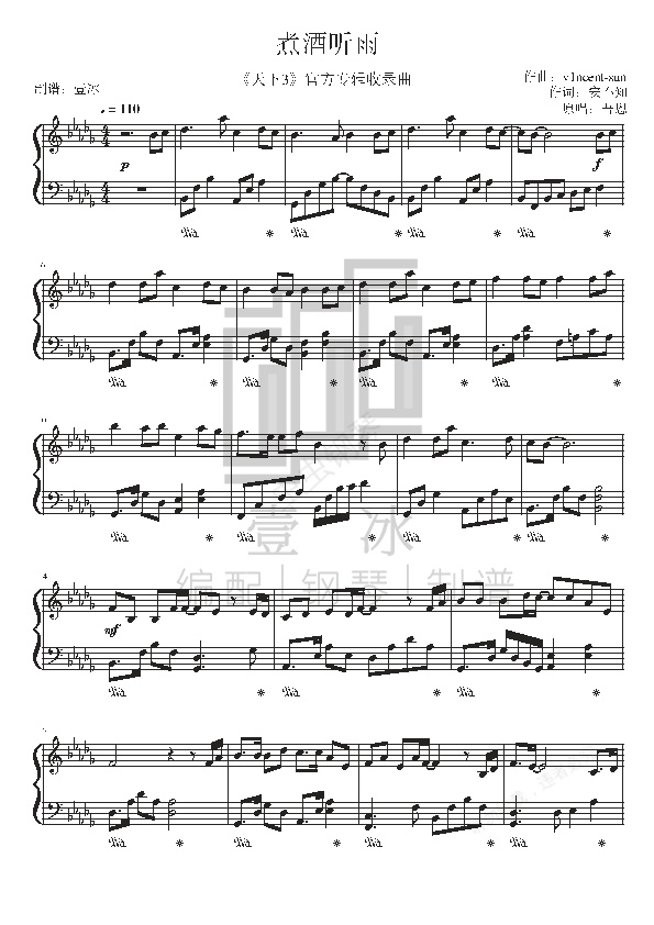 钢琴谱:煮酒听雨//游戏《天下3》官方收录-壹冰钢琴版降D