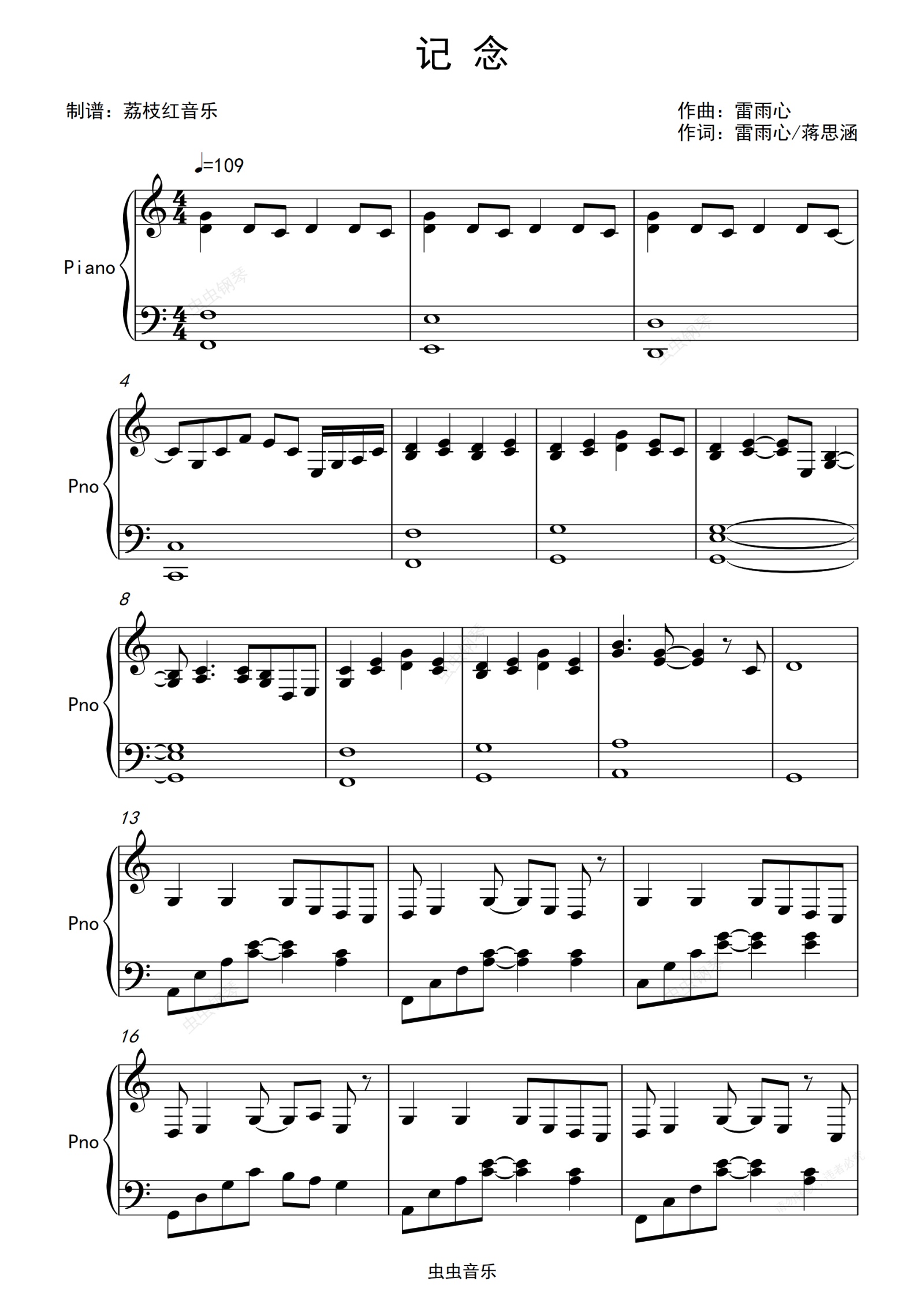 钢琴谱:欢迎来挑战!C调 记·念 RAINBOW雷雨心-钢琴谱