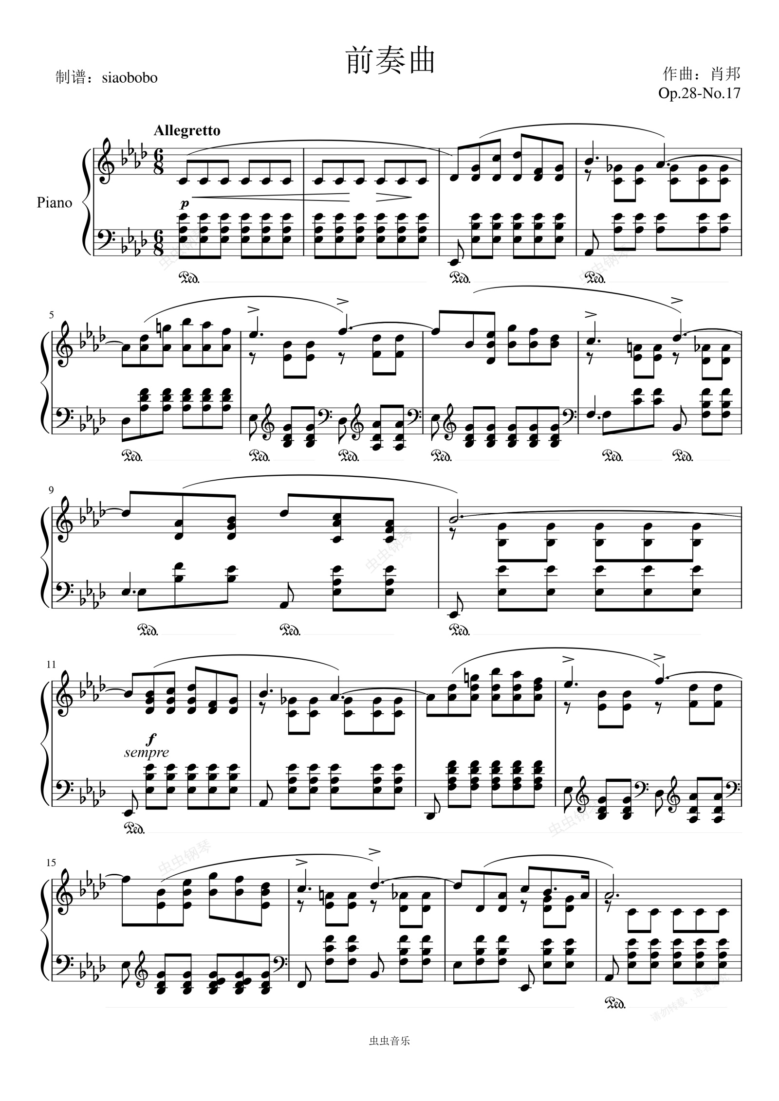 钢琴谱:Préludes——前奏曲Op.28-No.17(肖邦)
