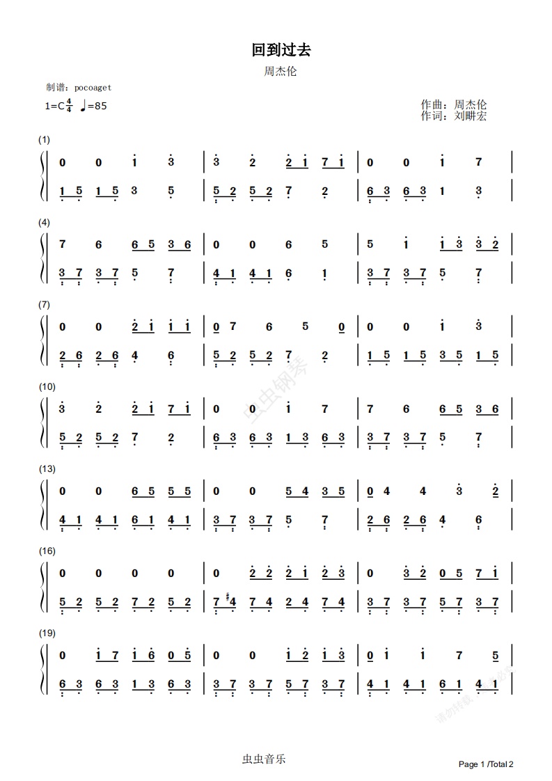 钢琴谱:《回到过去》简谱周杰伦初学者简优美版(poc编配)