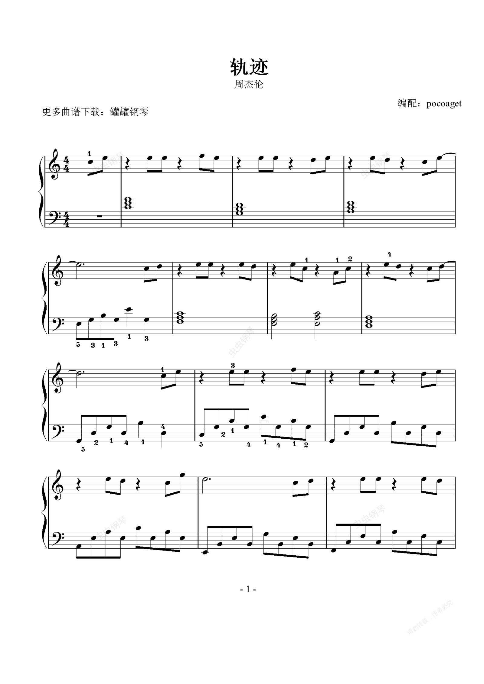 钢琴谱:《轨迹》周杰伦初学者优美版(poc编配)