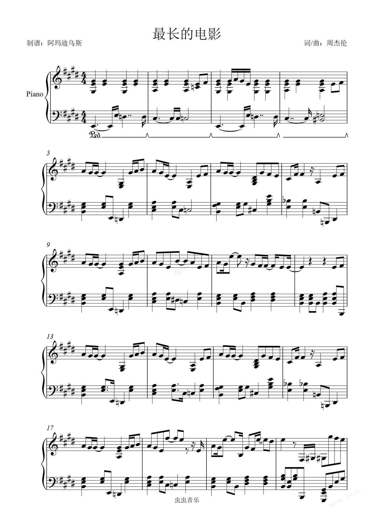 钢琴谱:最长的电影【精编钢琴独奏】周杰伦