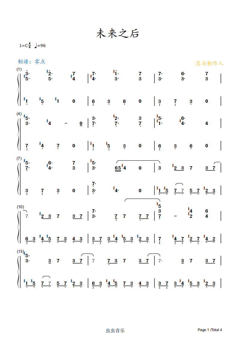 钢琴谱:未来之后-恋与制作人(双手简谱)