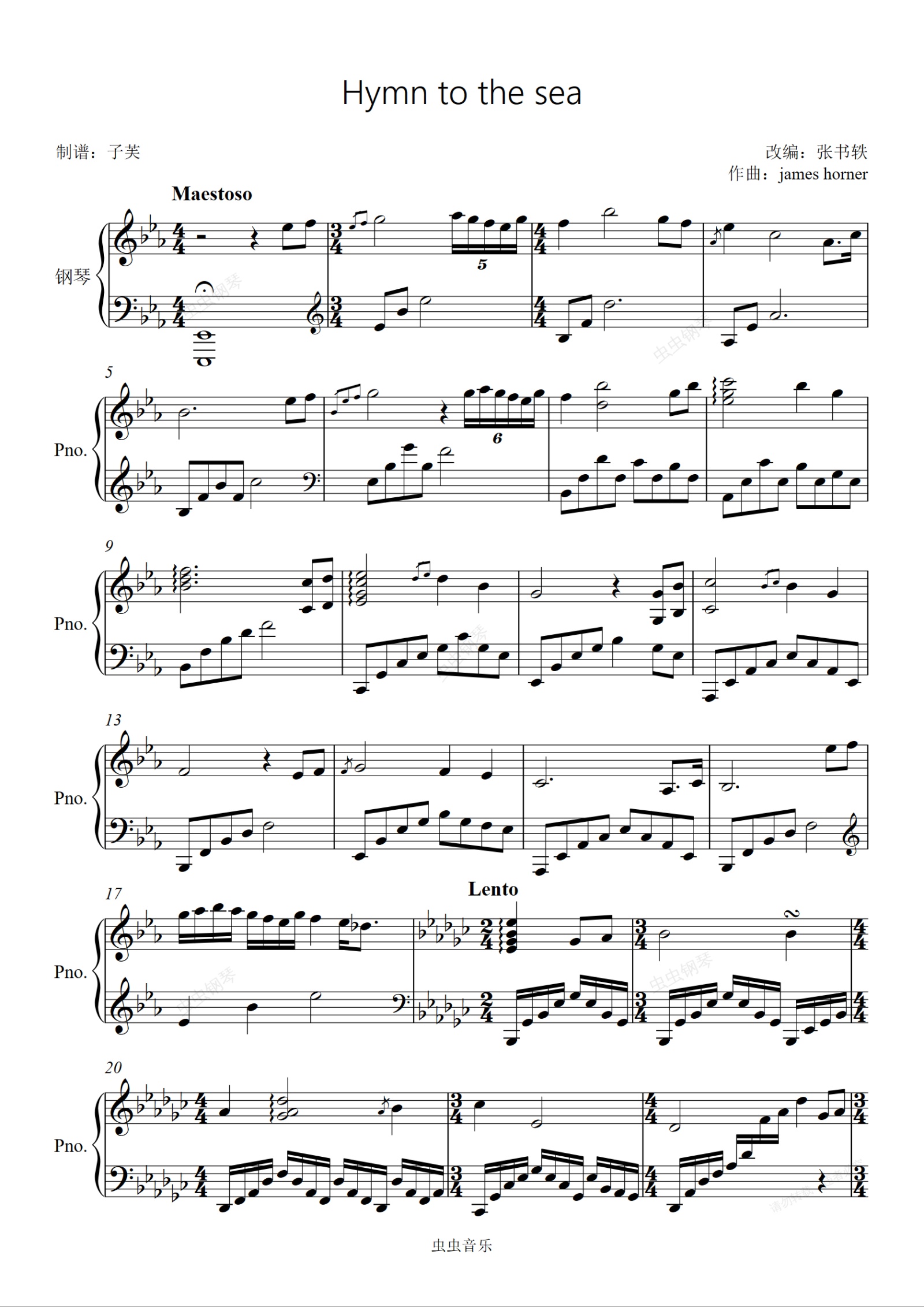 钢琴谱:Hymn to the sea-大海的咏叹-泰坦尼克号-钢琴华丽独奏版