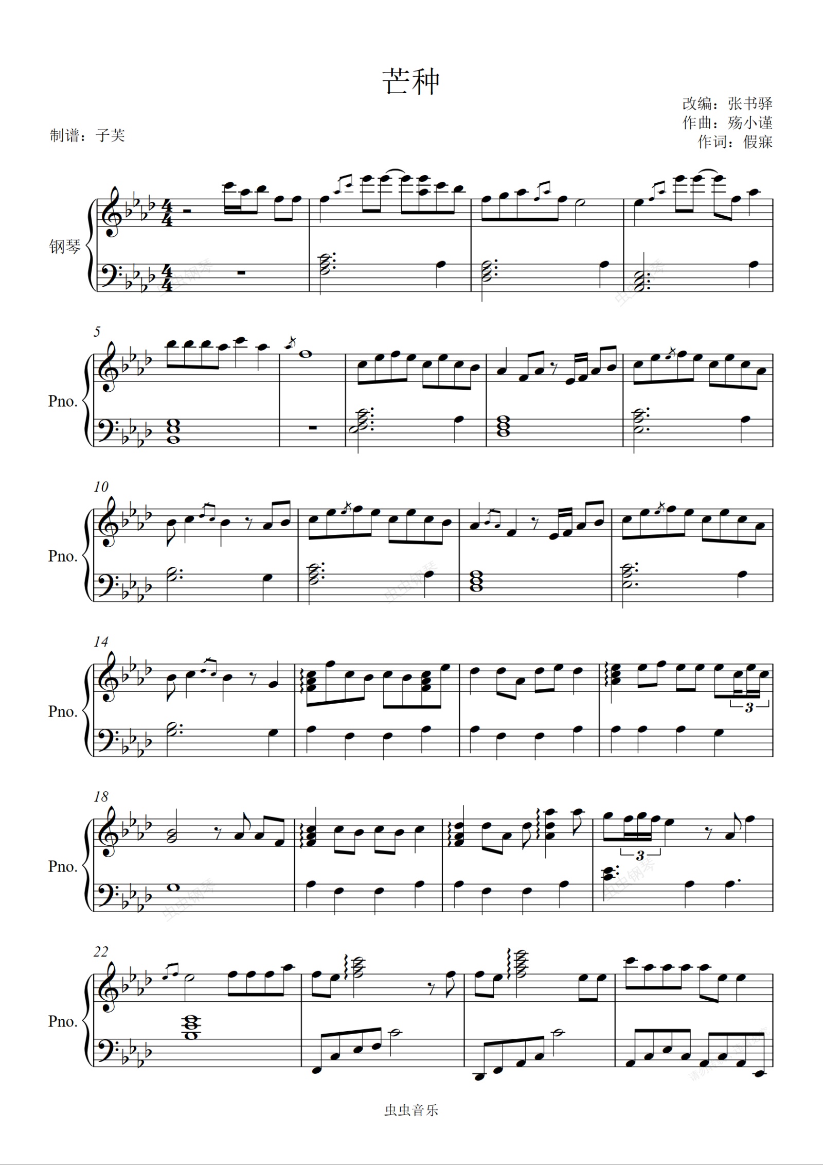 钢琴谱:芒种-音阙诗听-唯美改编版