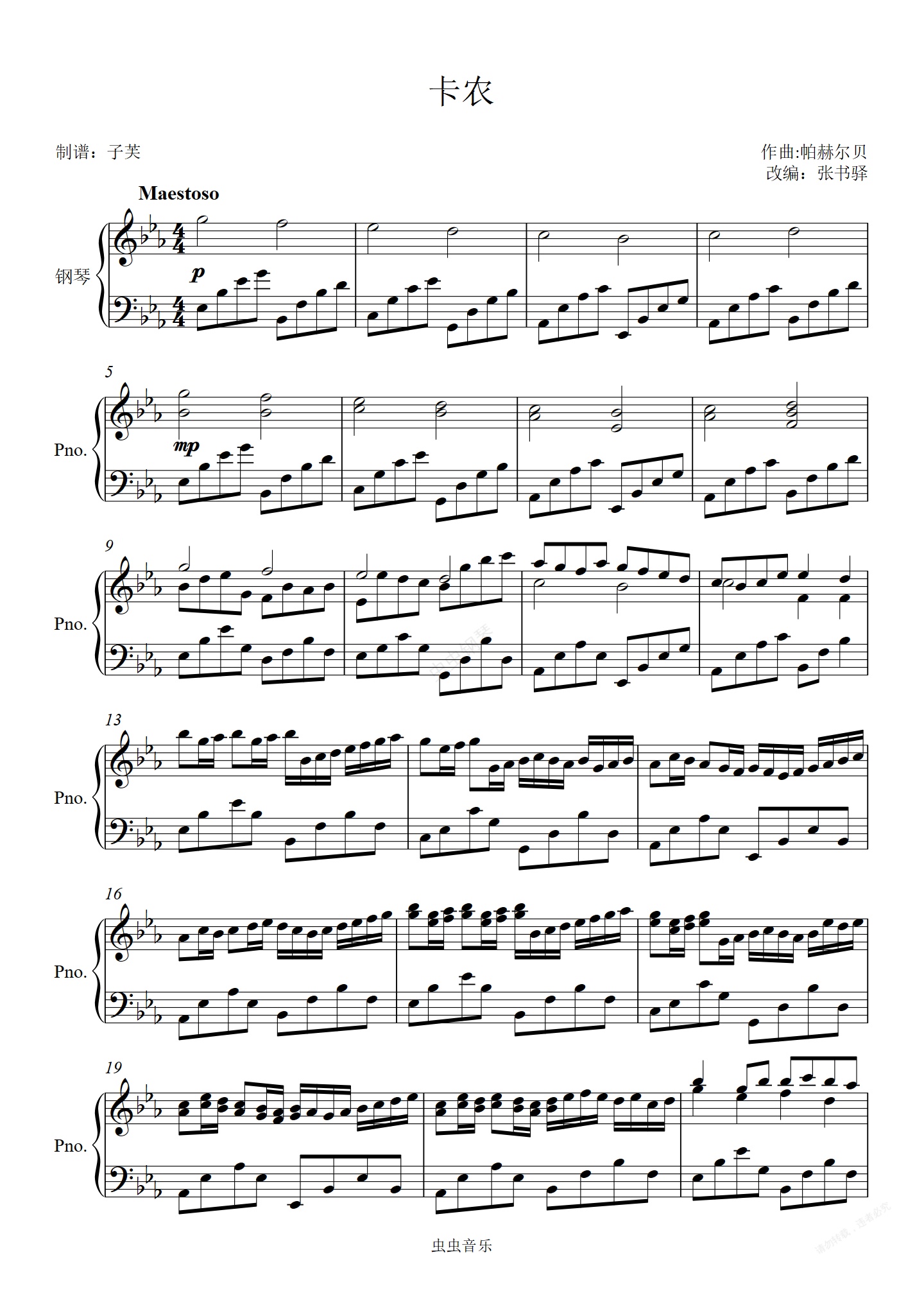 钢琴谱:卡农
