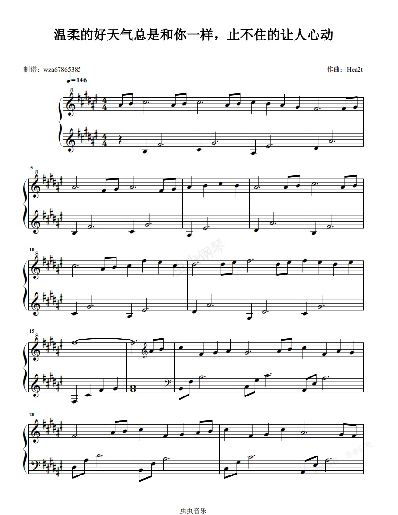 钢琴谱:温柔的好天气总是和你一样,止不住的让人心动