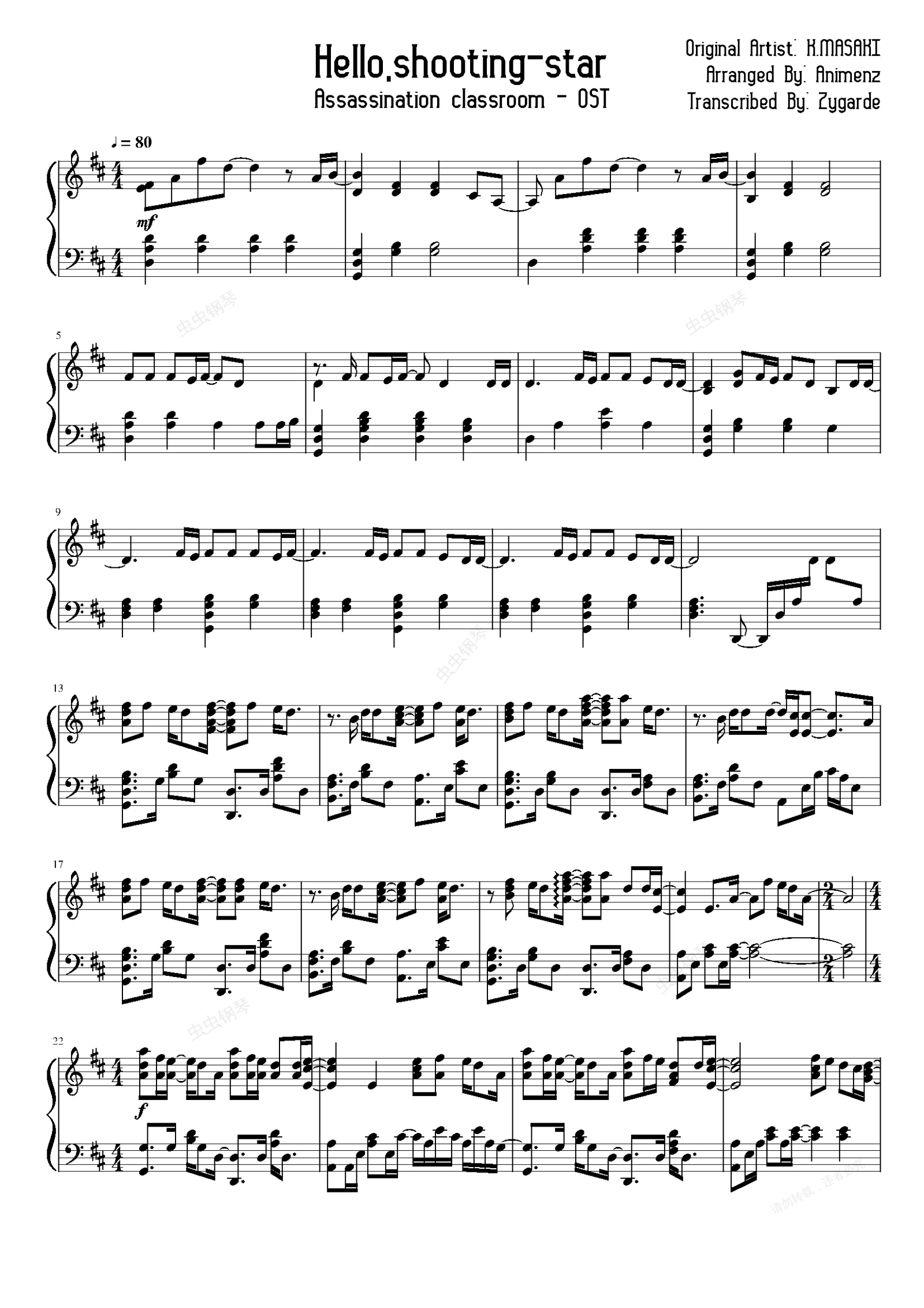 钢琴谱:【Animenz】Hello,shooting-star 暗杀教室 ED (Animenz x Animax 合作)