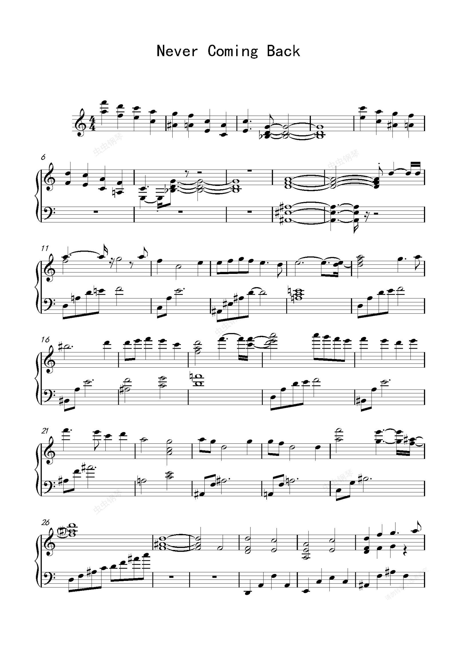钢琴谱:紫罗兰永恒花园 Never Coming Back
