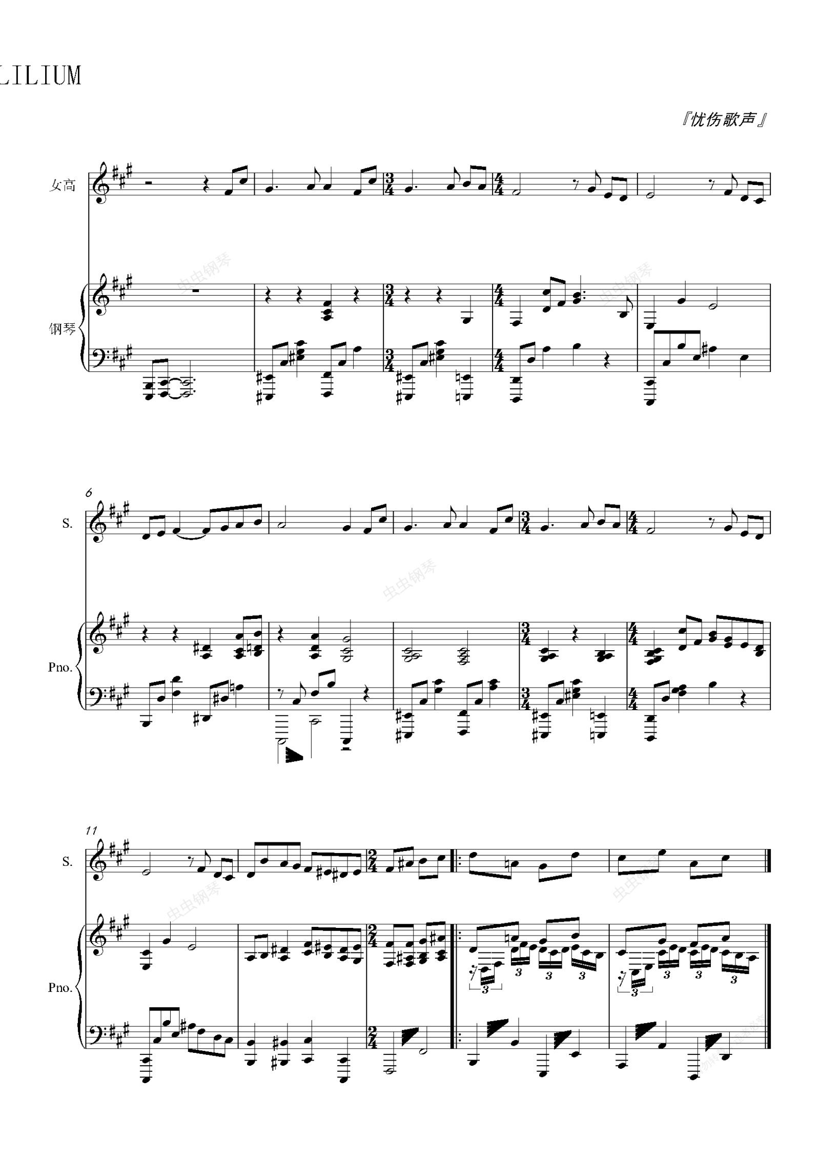 钢琴谱:【妖精的旋律】Lilium——『忧伤歌声』