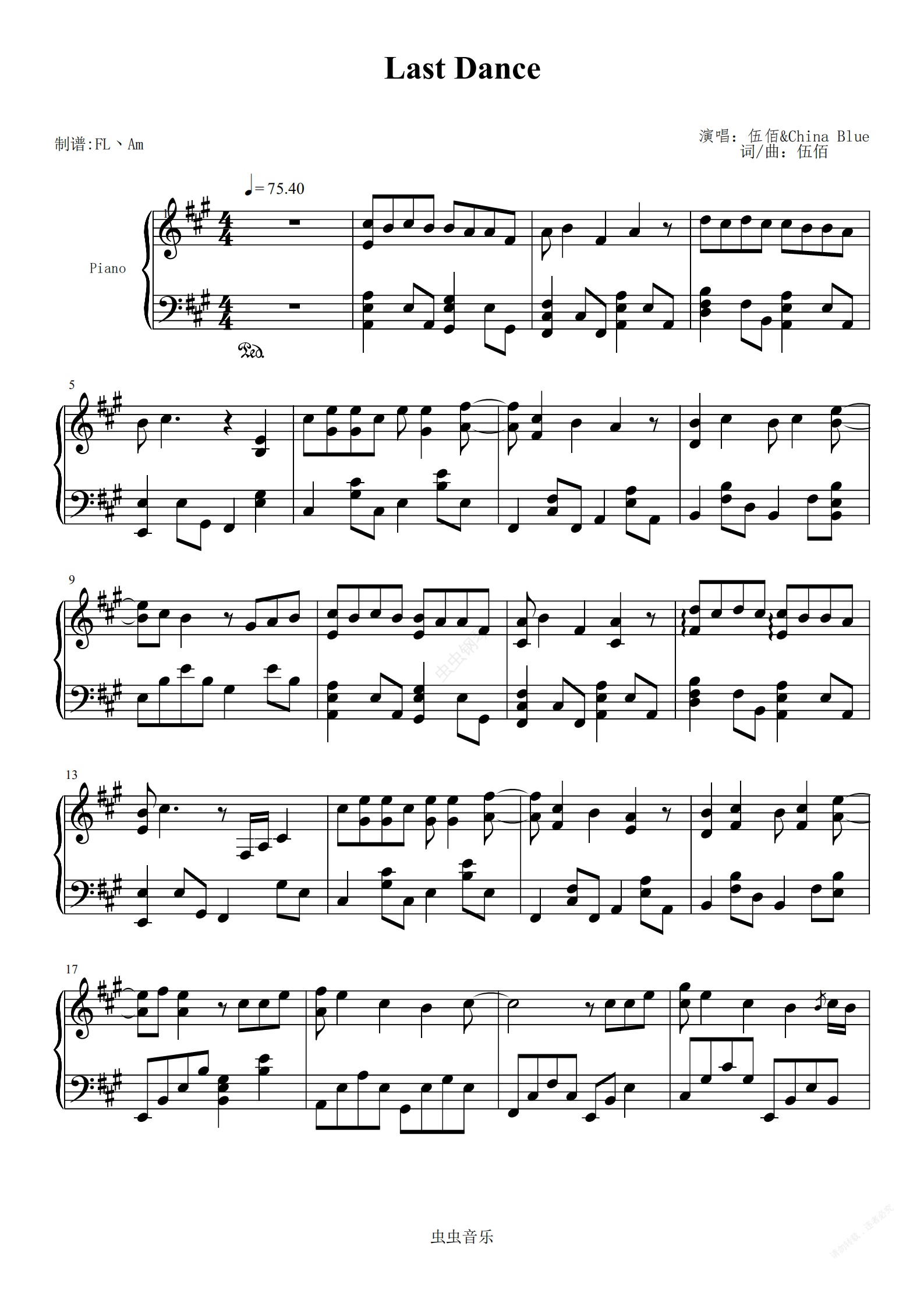 钢琴谱:Last Dance(完整版)
