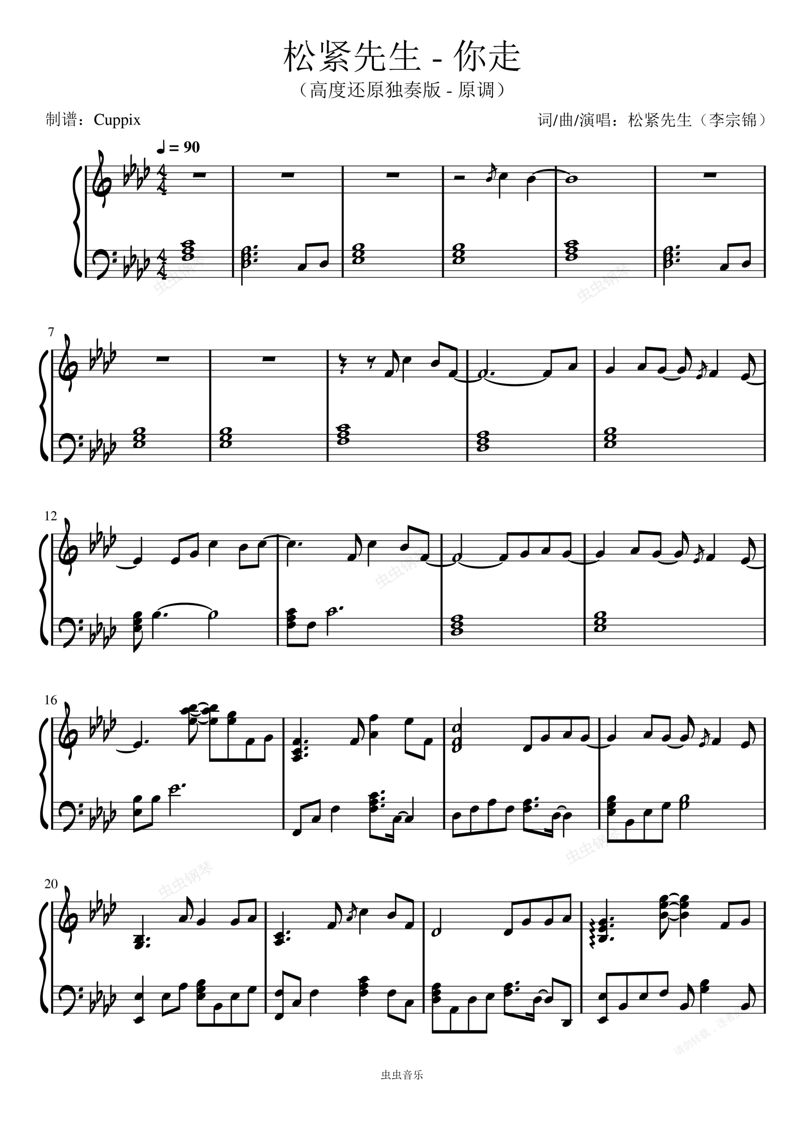 钢琴谱:松紧先生《你走》高燃独奏版-原调(Cuppix改编 完美还原 李宗锦)