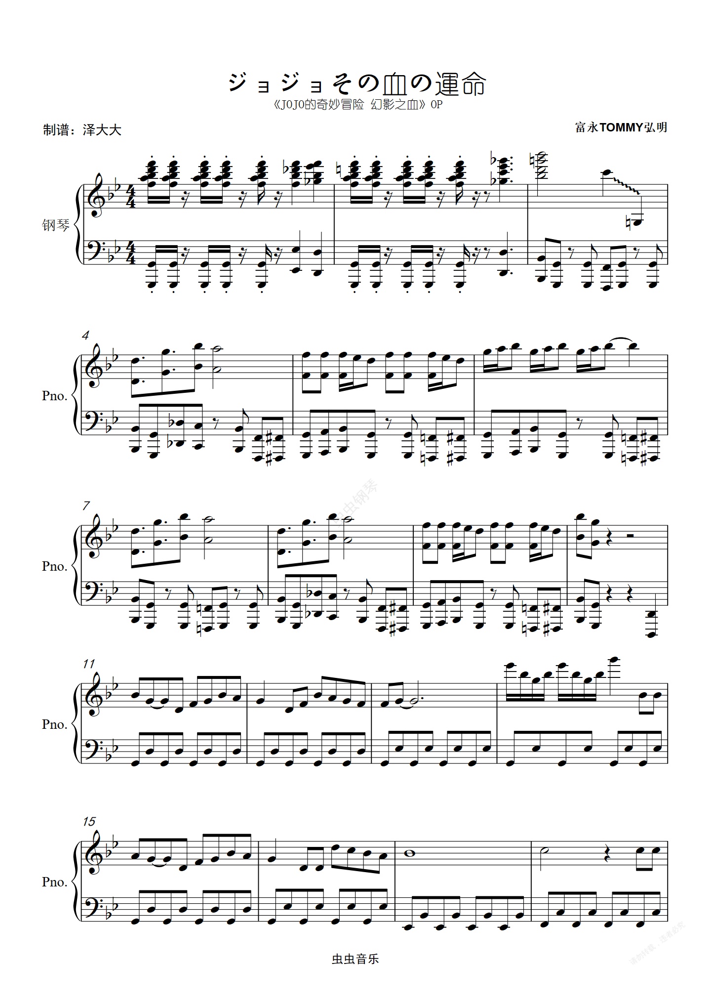 钢琴谱:ジョジョ~その血の運命【完美独奏版】JOJO