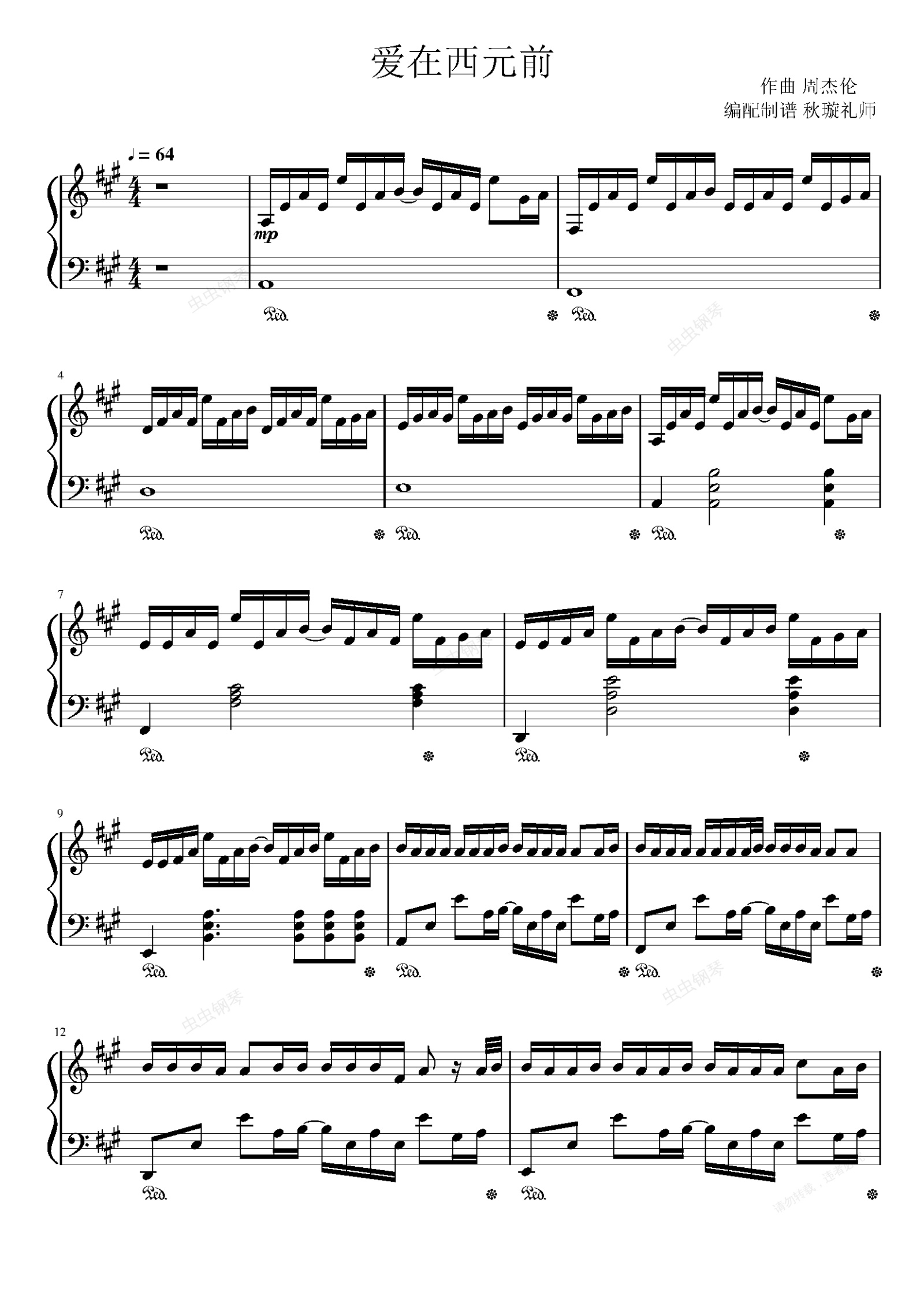 钢琴谱:周杰伦-爱在西元前[杰迷完美演奏级]