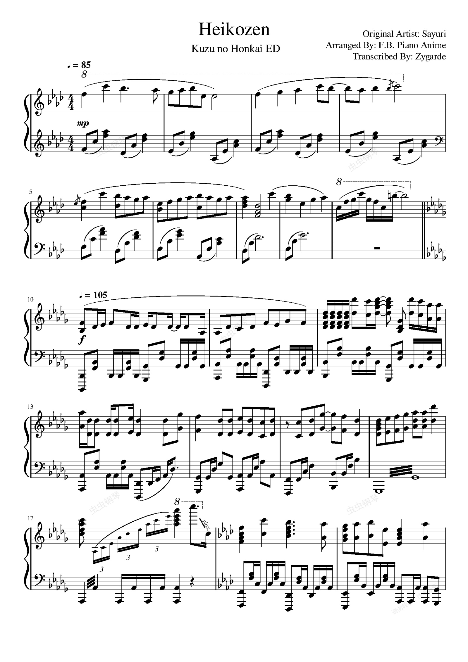 钢琴谱:人渣的本愿ED - 平行线 (TV Size)